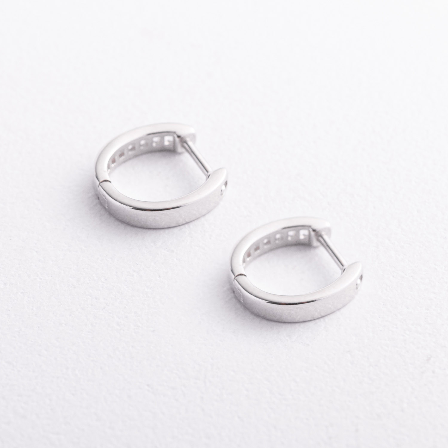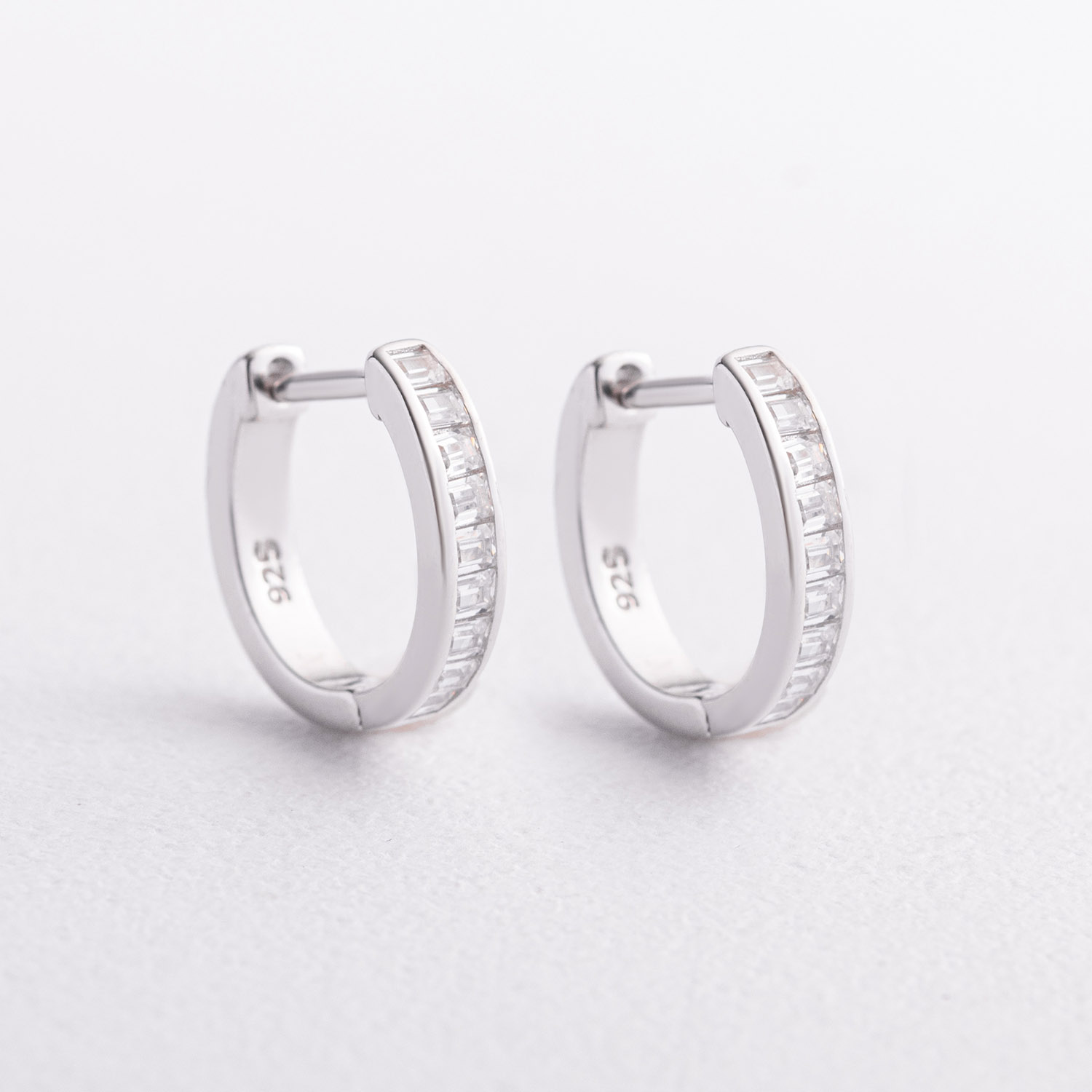 Серебряные серьги - кольца с фианитами 123558 от ювелирного магазина Оникс - 1