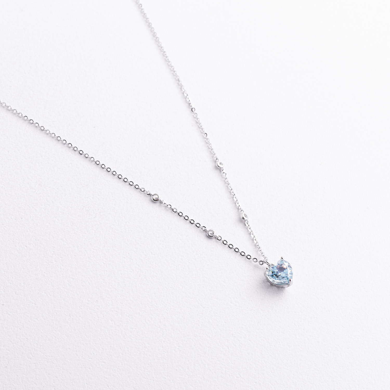 Серебряное колье "Сердечко" (голубой и белые фианиты) 181390 от ювелирного магазина Оникс - 1