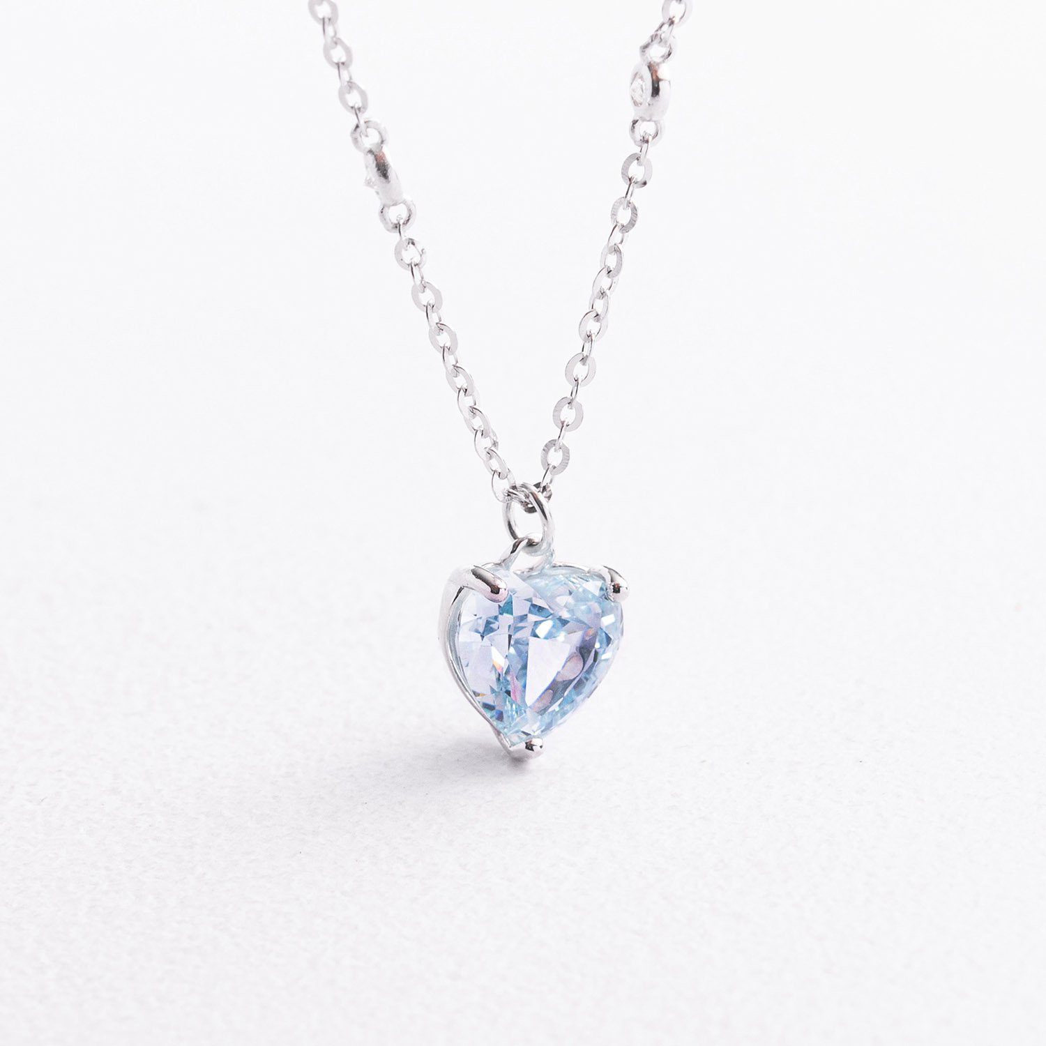Серебряное колье "Сердечко" (голубой и белые фианиты)