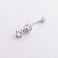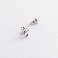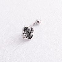 Серебряный пирсинг в пупок "Клевер" (фианиты) 26018
