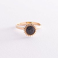 Золотое кольцо "Подсолнух" с черными бриллиантами 226153122 22