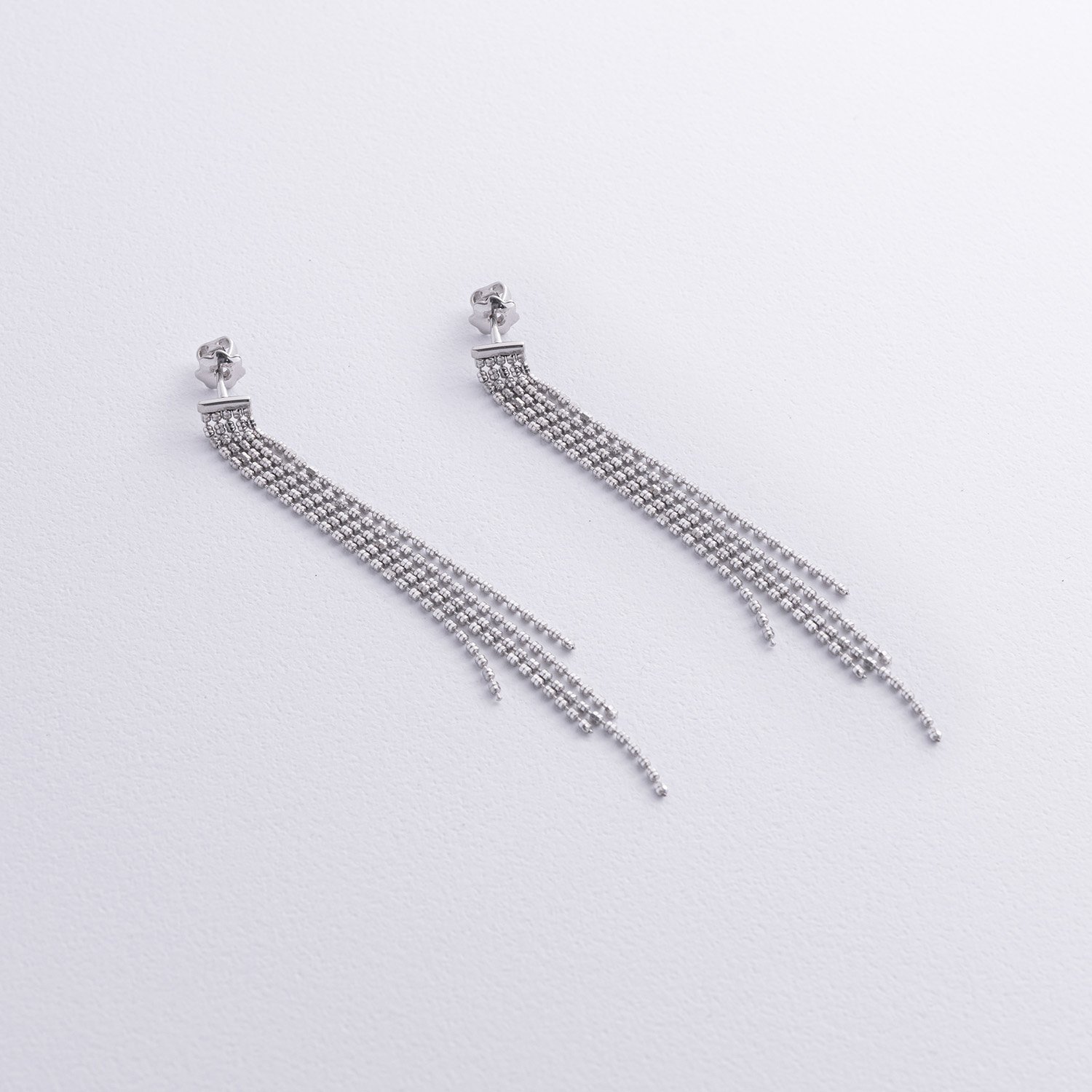 Серебряные серьги - пусеты с цепочками 902-01595 от ювелирного магазина Оникс - 1