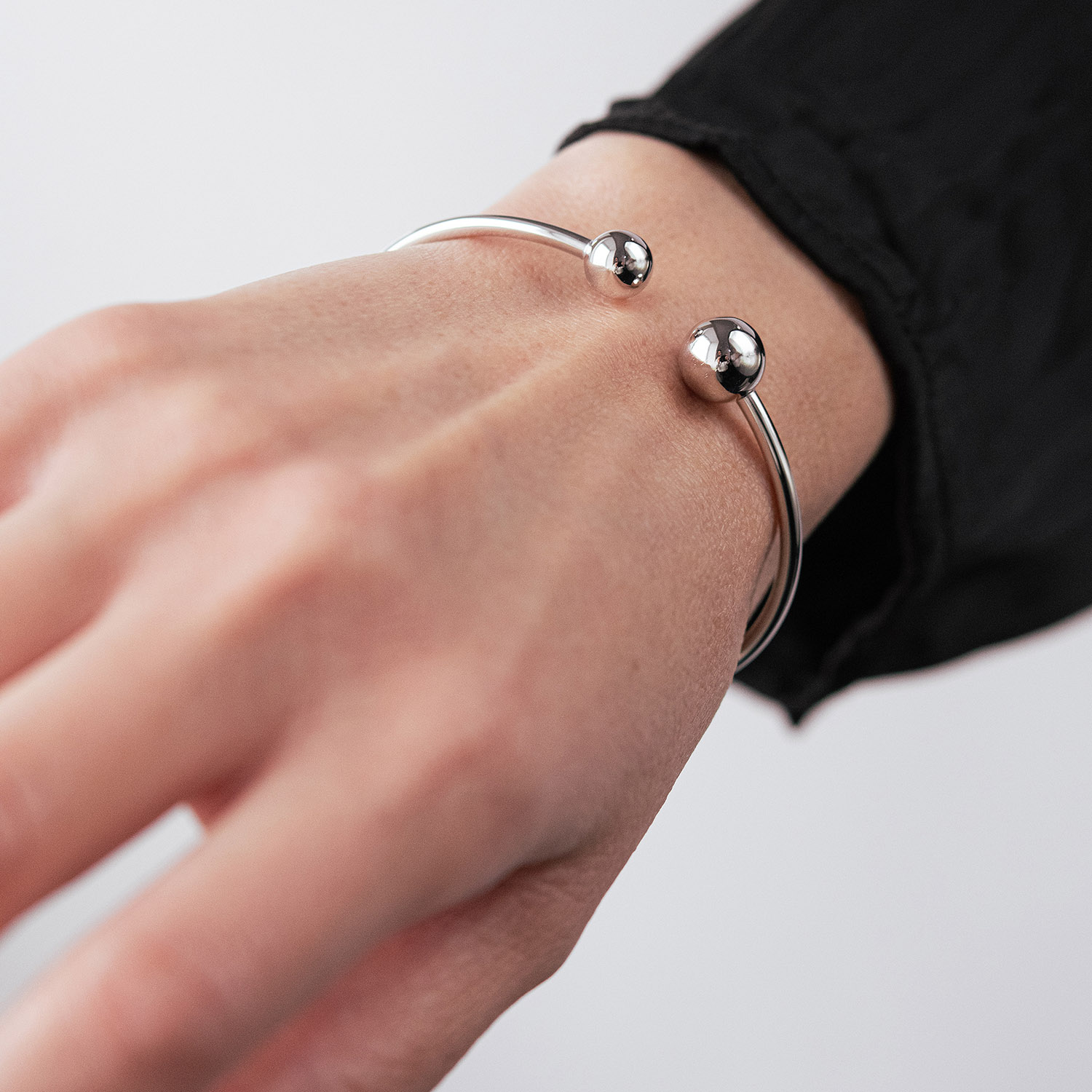Жесткий браслет "Шарики" в белом золоте