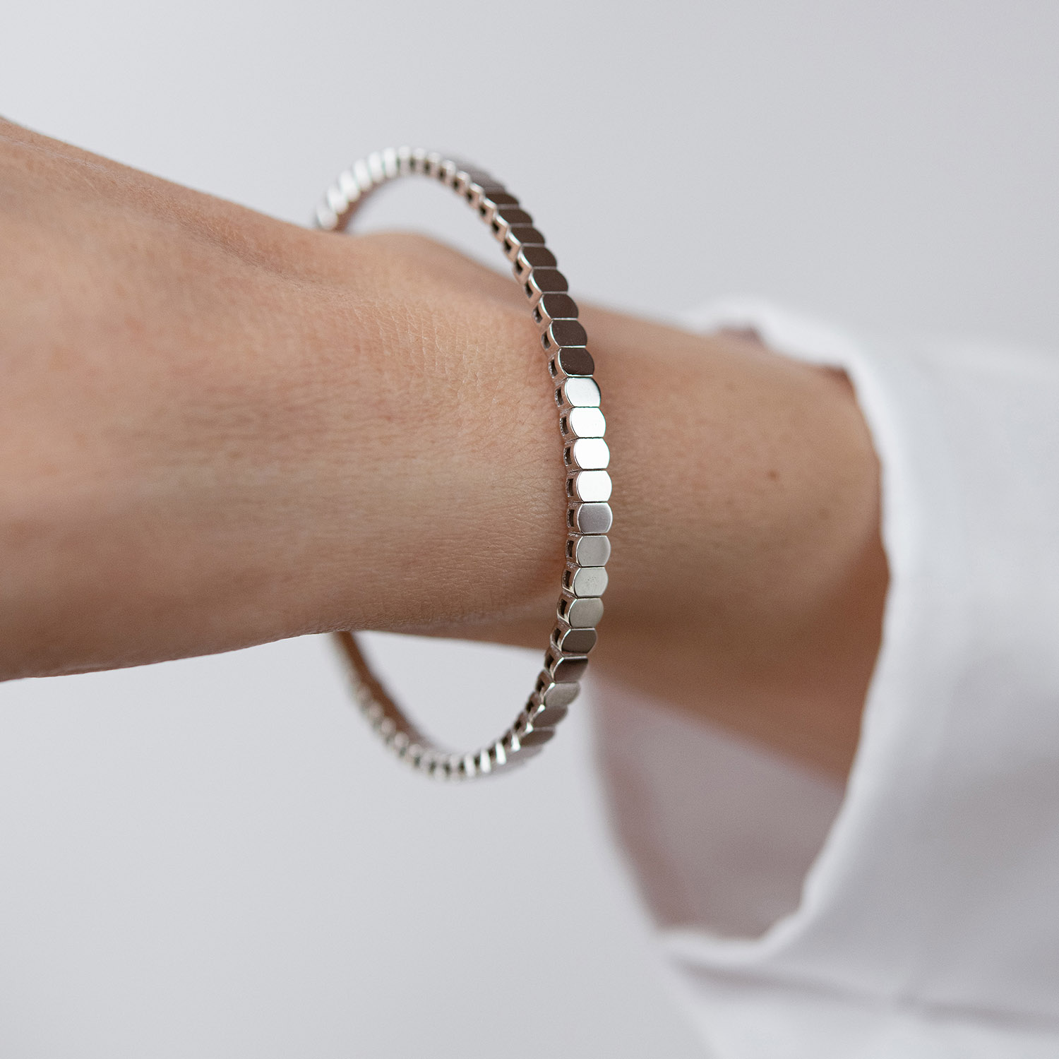 Жесткий браслет "Kylie" в белом золоте