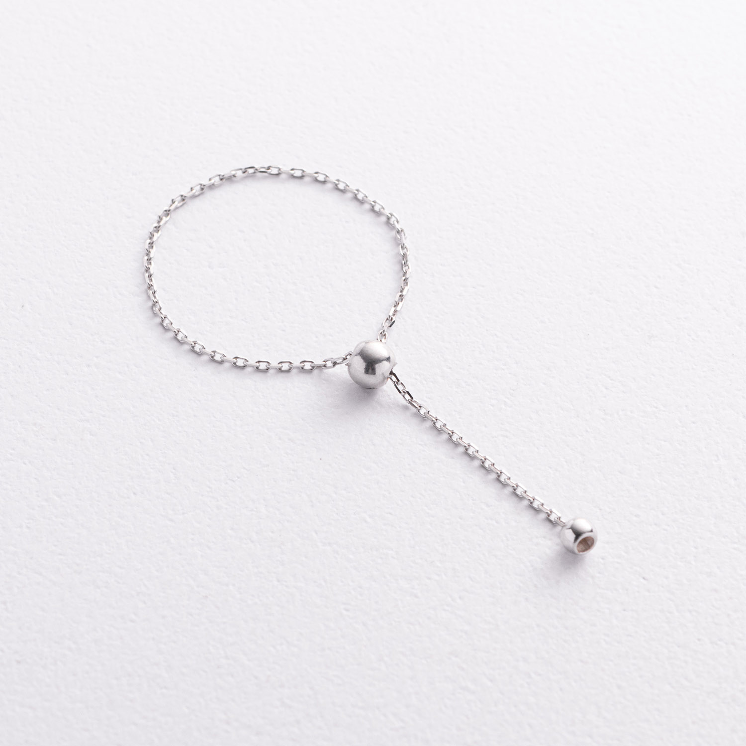 Кольцо "Шарик на цепочке" в белом золоте