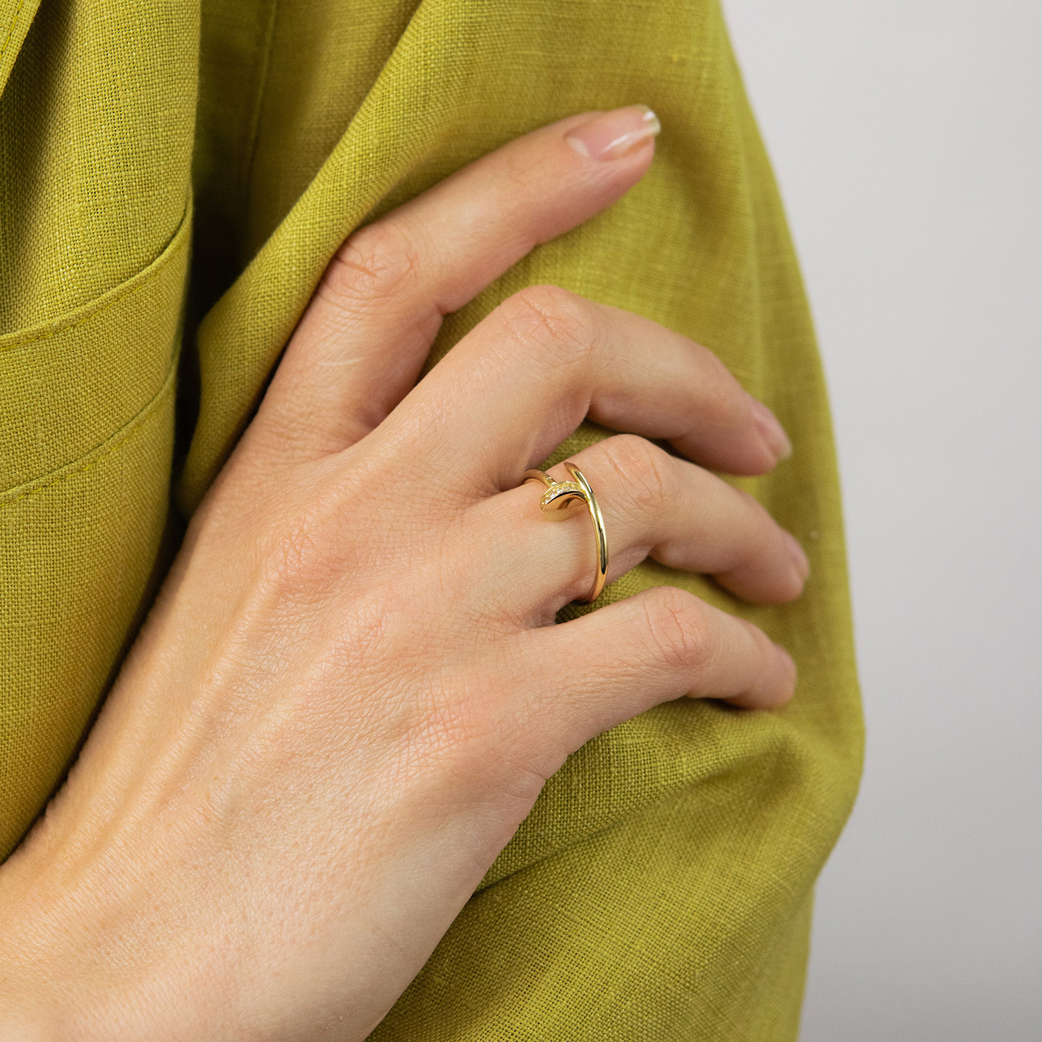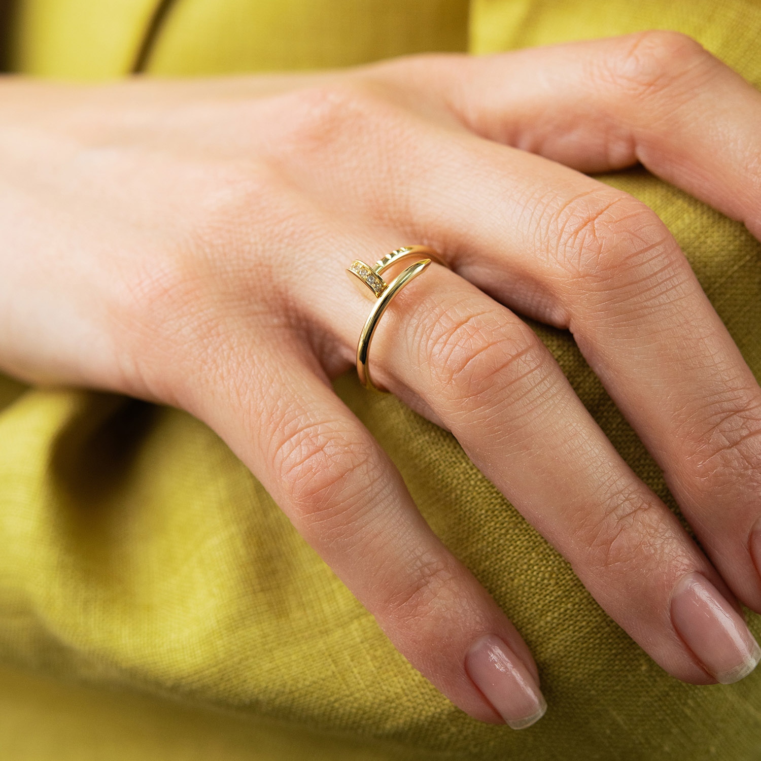 Кольцо "Гвоздь" в желтом золоте (фианиты)