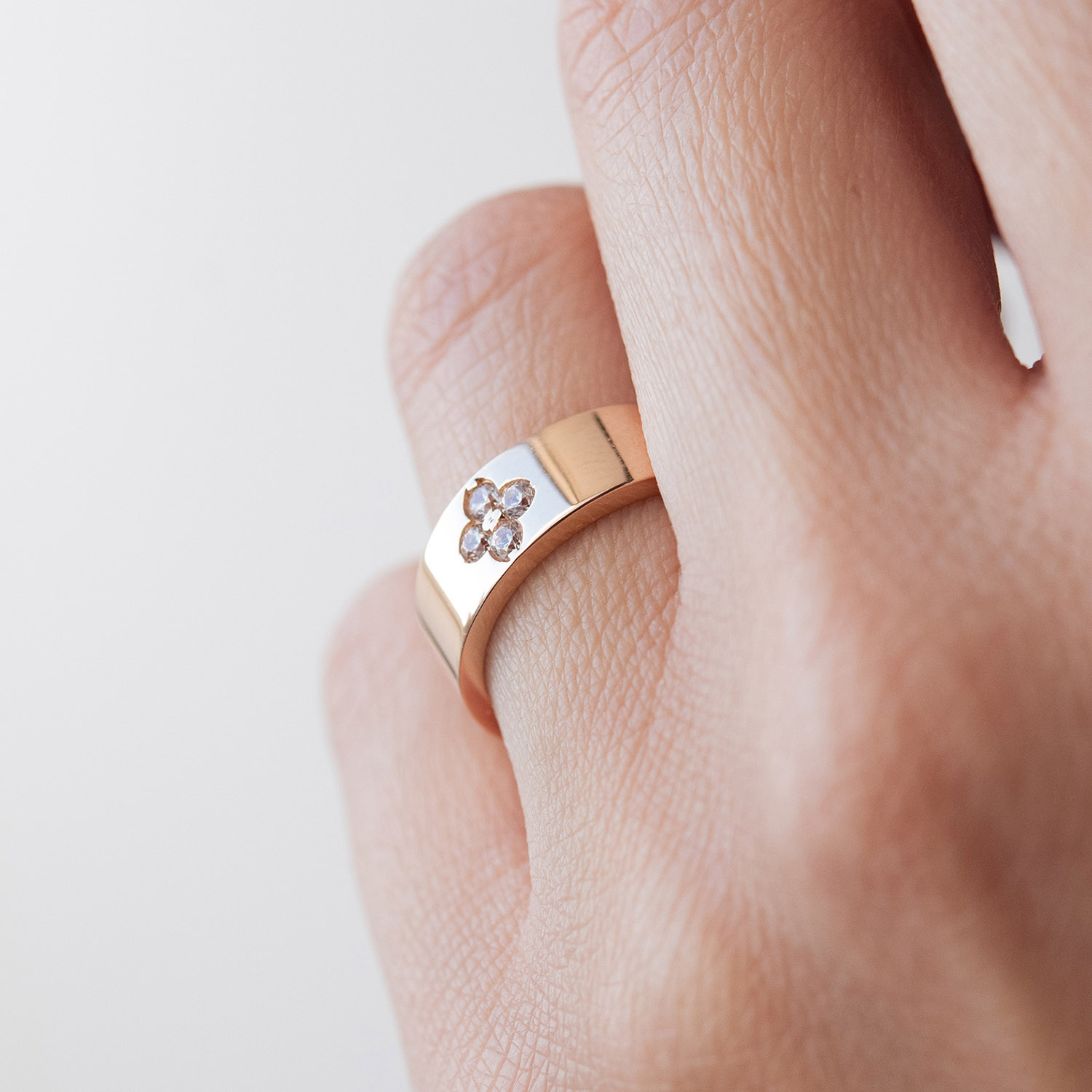 Кольцо "Клевер" в красном золоте (фианиты) к08361 от ювелирного магазина Оникс