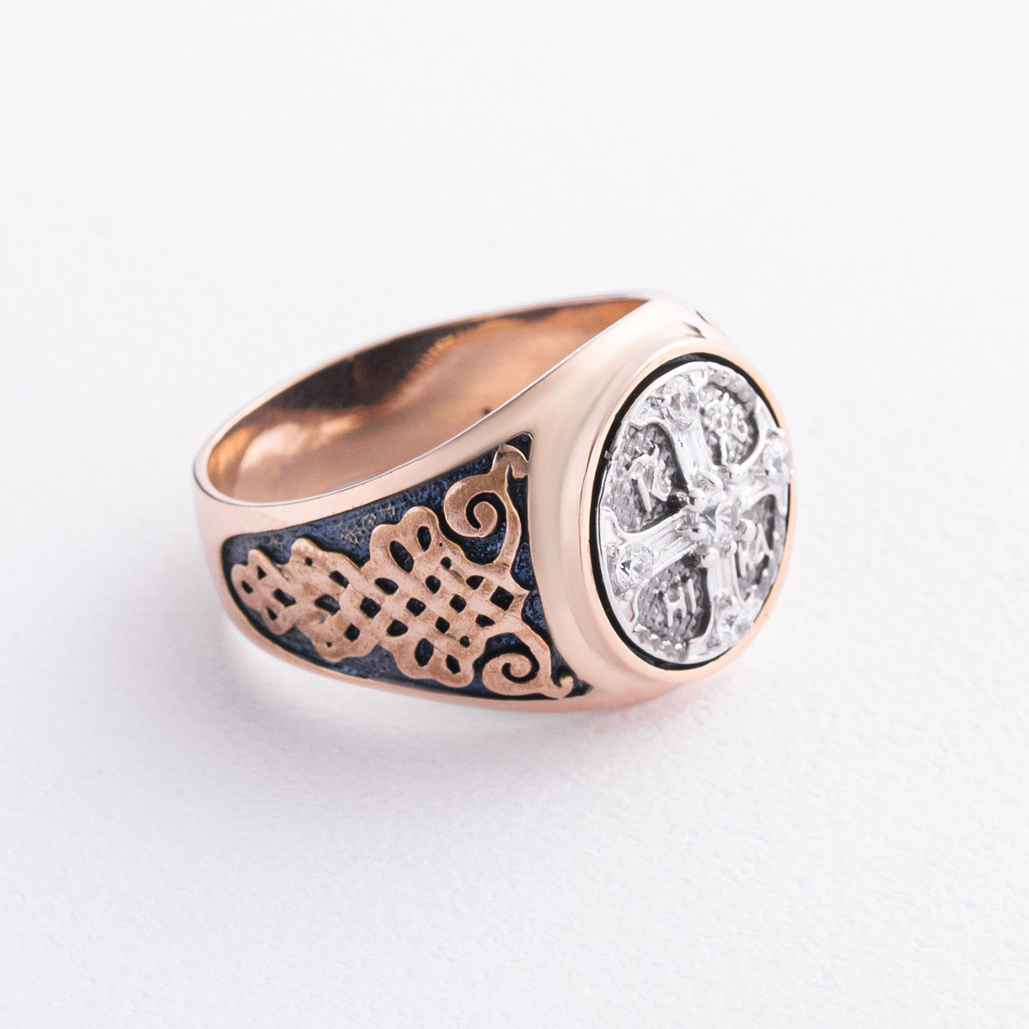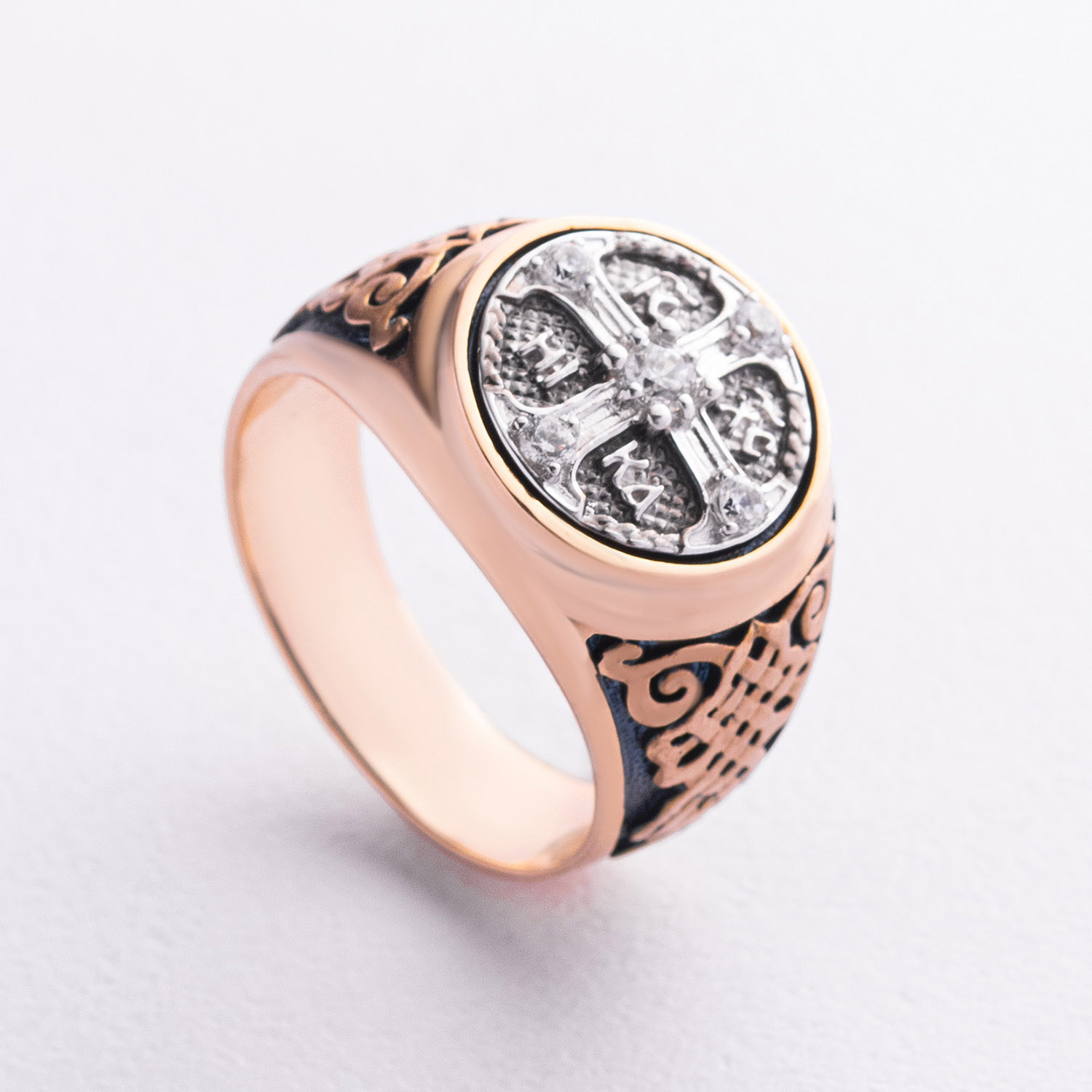 Золотое мужское кольцо-печатка (чернение) к08443 от ювелирного магазина Оникс - 1