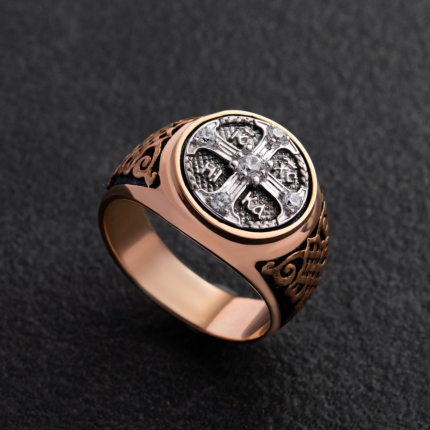 Золотое мужское кольцо-печатка (чернение) к08443 от ювелирного магазина Оникс
