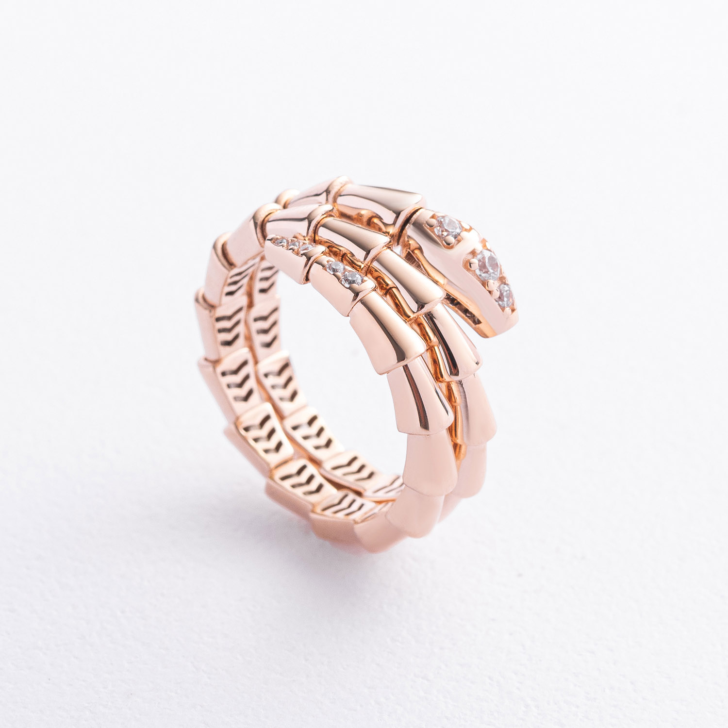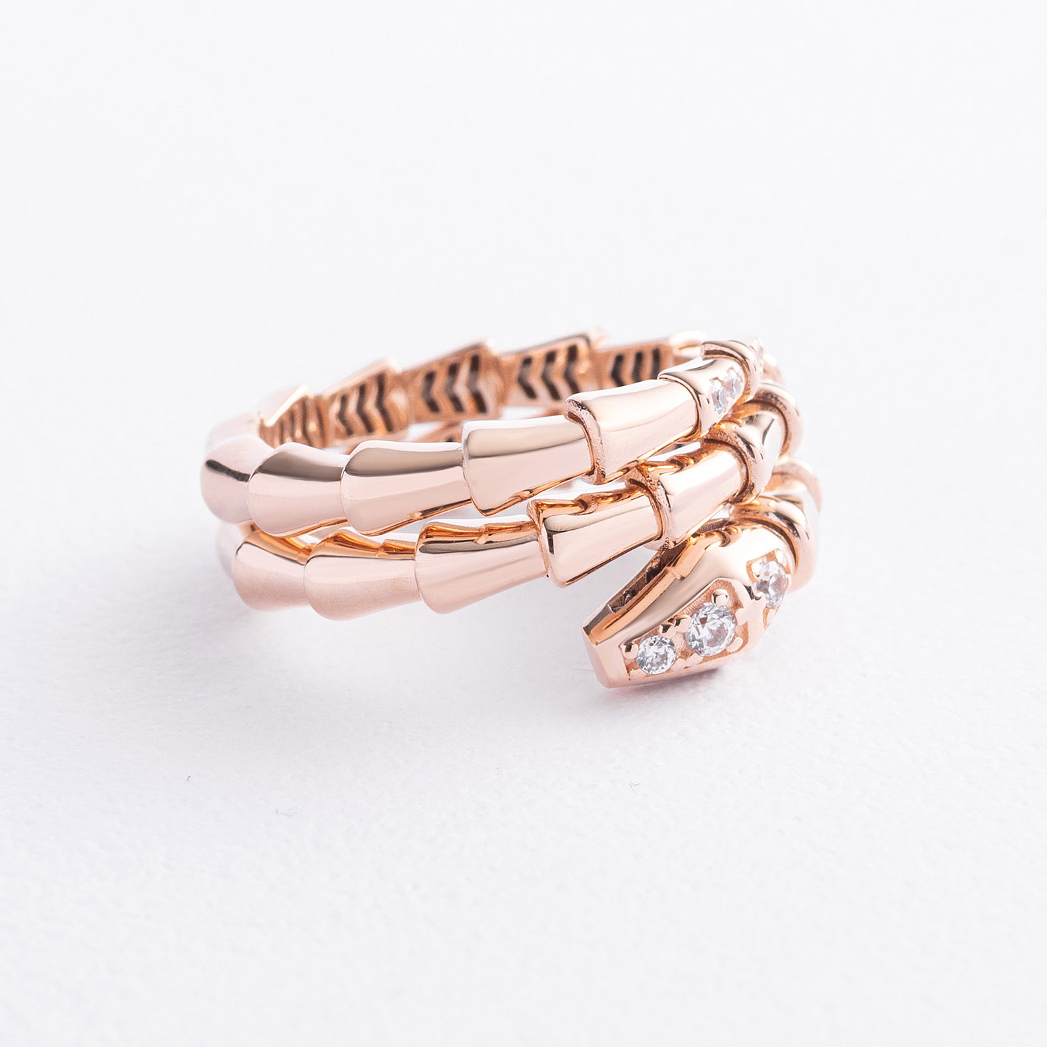Кольцо "Змея" в красном золоте (фианиты)