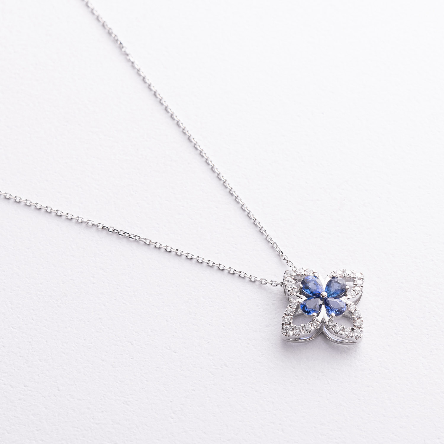 Колье "Клевер" в белом золоте (бриллианты, сапфиры) колб0191sm от ювелирного магазина Оникс - 2