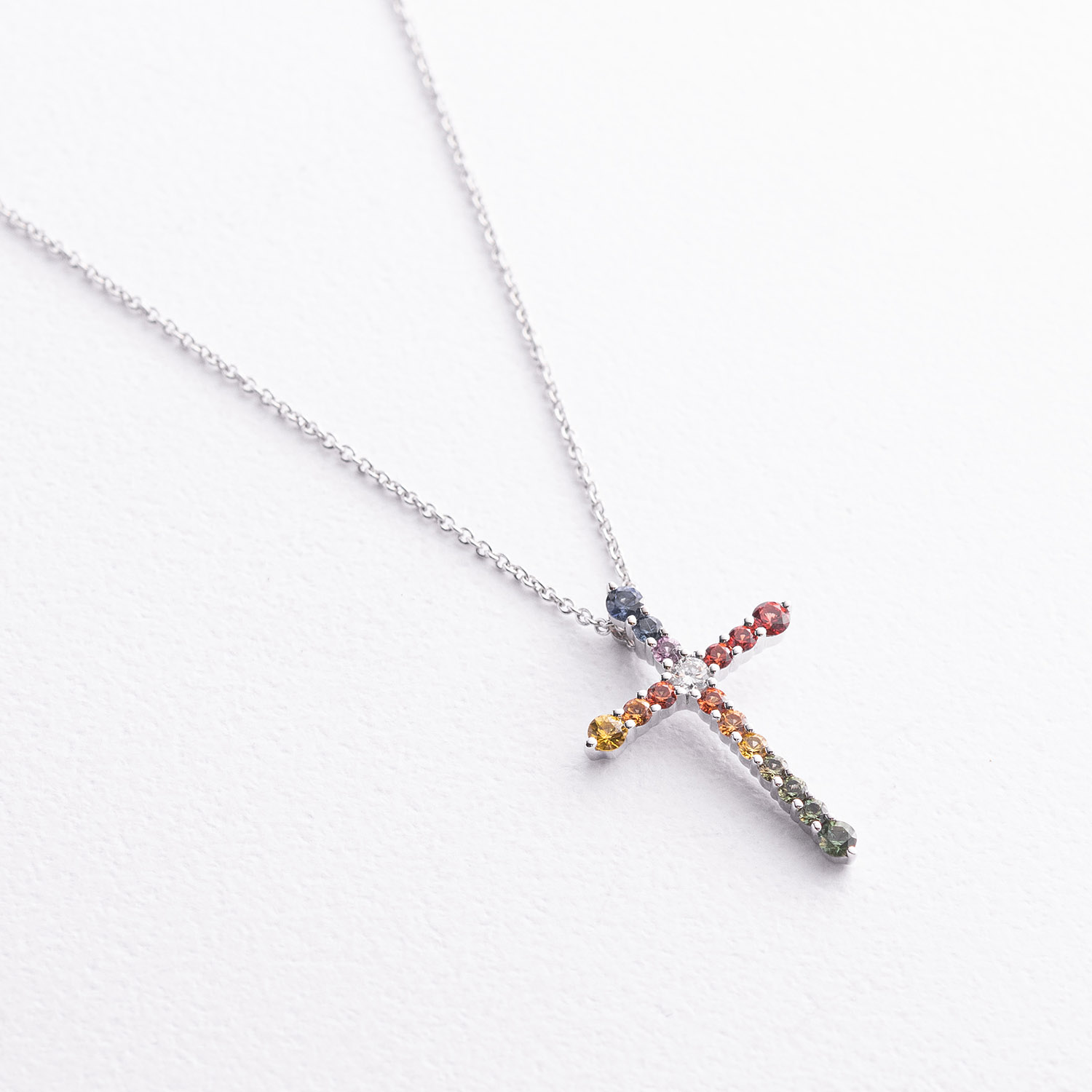 Золотое колье "Крестик" с бриллиантом и сапфирами колб0199lg от ювелирного магазина Оникс - 2