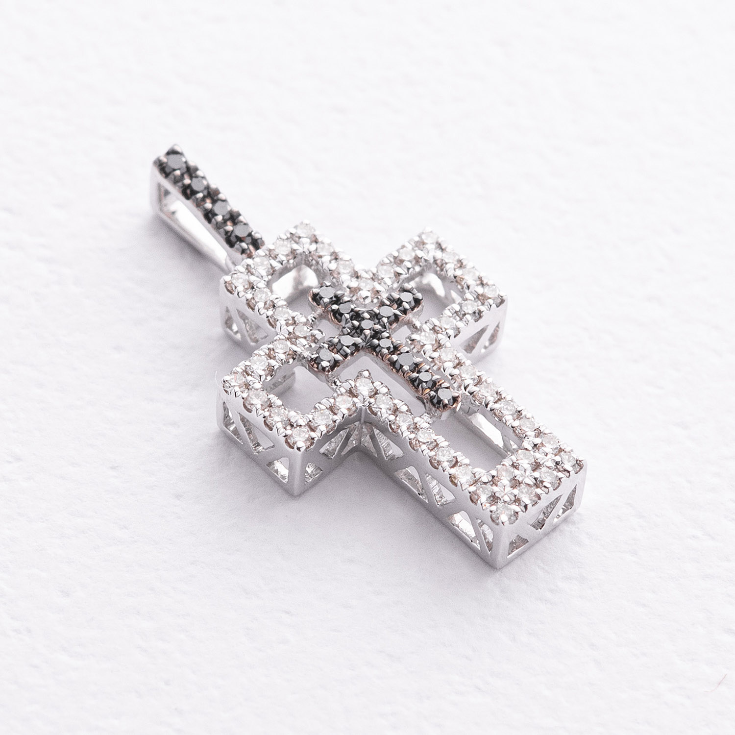 Золотой крестик с белыми и черными бриллиантами пб0397ca от ювелирного магазина Оникс - 1