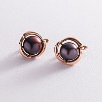 Золотые серьги-пусеты (культ. пресн. жемчуг, фианиты)
