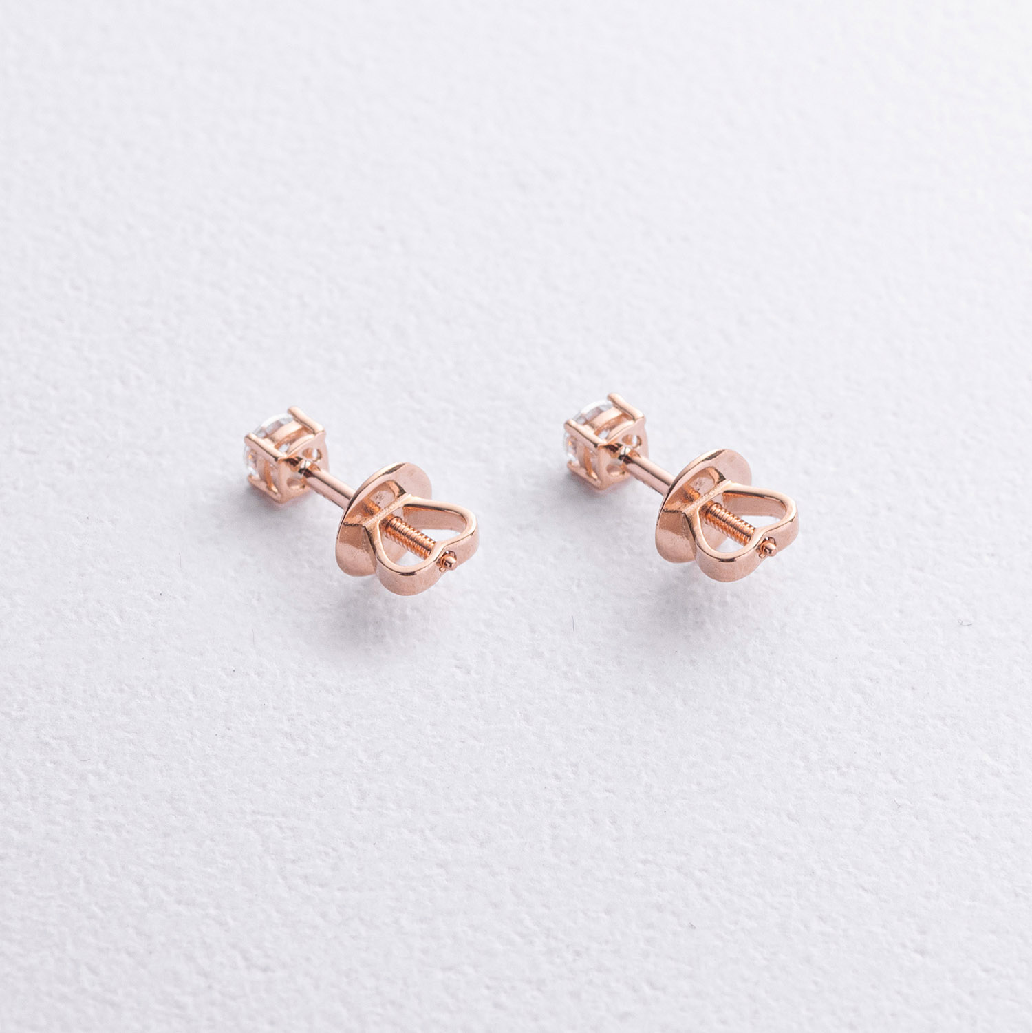 Серьги - пусеты с фианитами (красное золото) с06068 от ювелирного магазина Оникс - 1