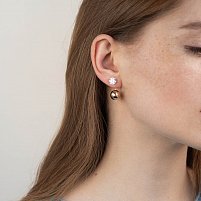 Золотые серьги "Шарики" с фианитами с06977 от ювелирного магазина Оникс - 1
