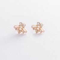 Серьги - пусеты "Пчелки" в красном золоте (фианиты) с08579