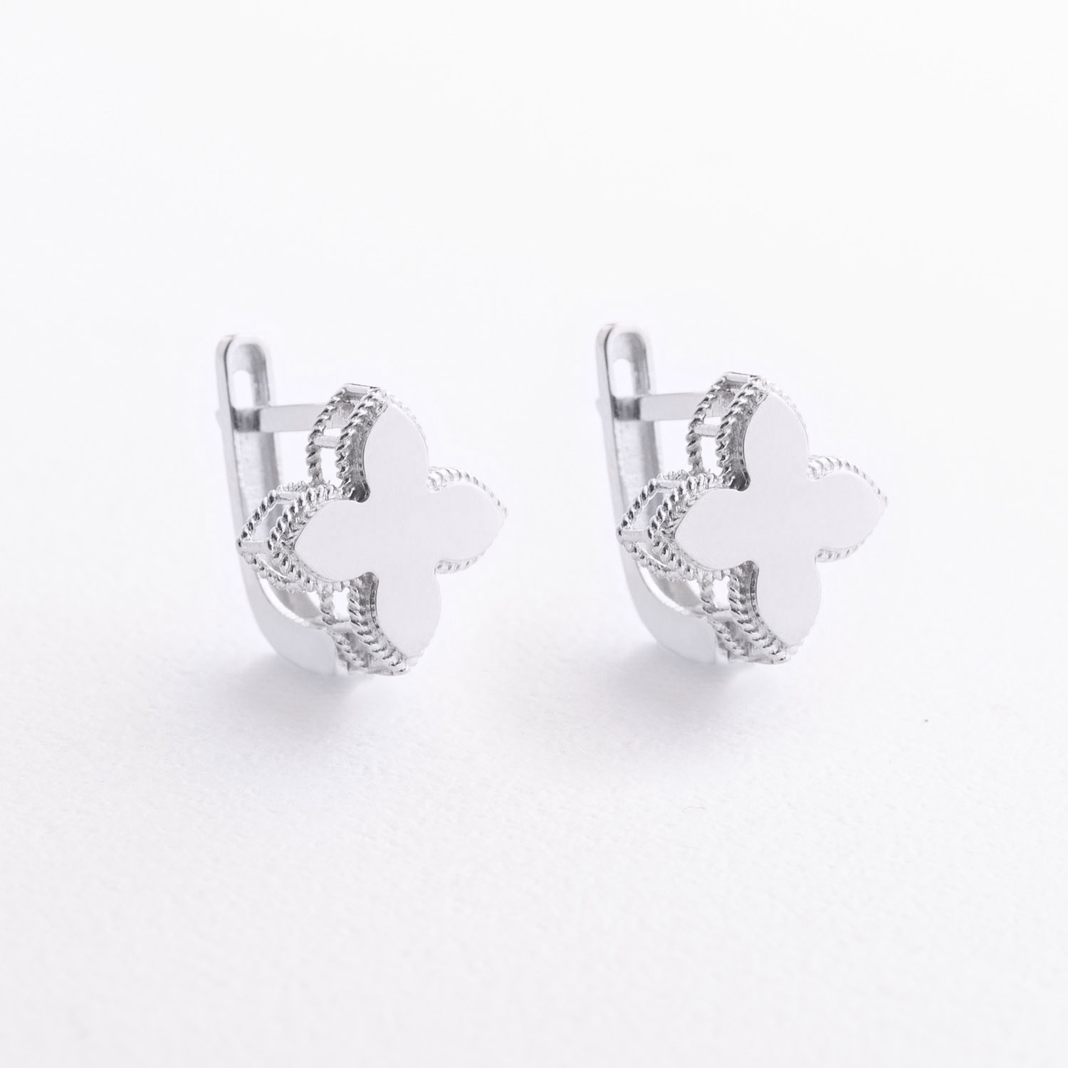 Серьги "Клевер" в белом золоте