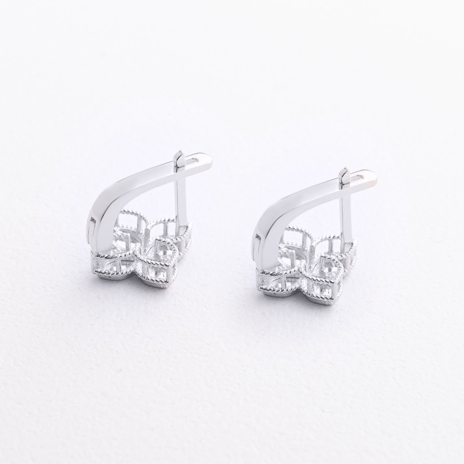 Серьги "Клевер" в белом золоте с09649 от ювелирного магазина Оникс - 1