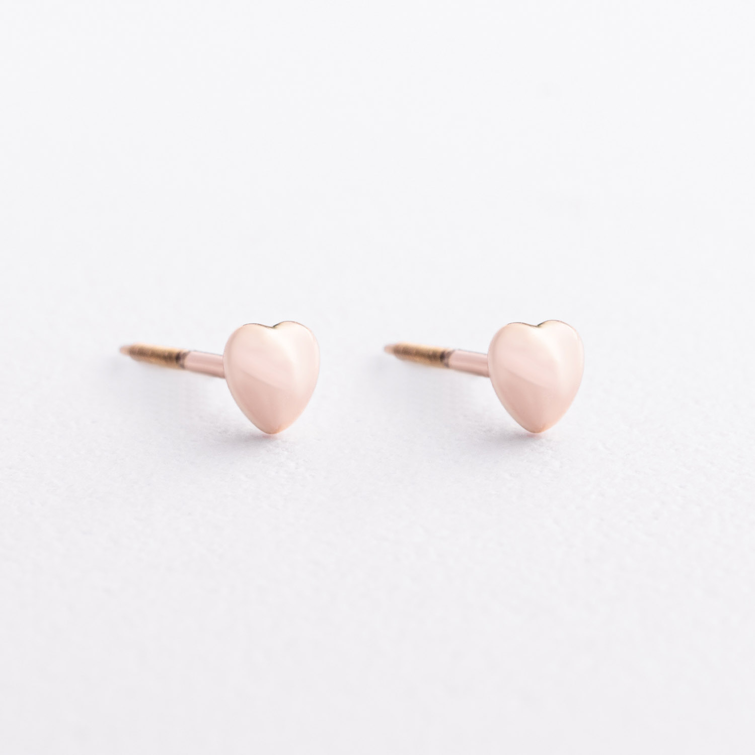 Серьги - пусеты "Сердечки" в красном золоте с09656 от ювелирного магазина Оникс - 1