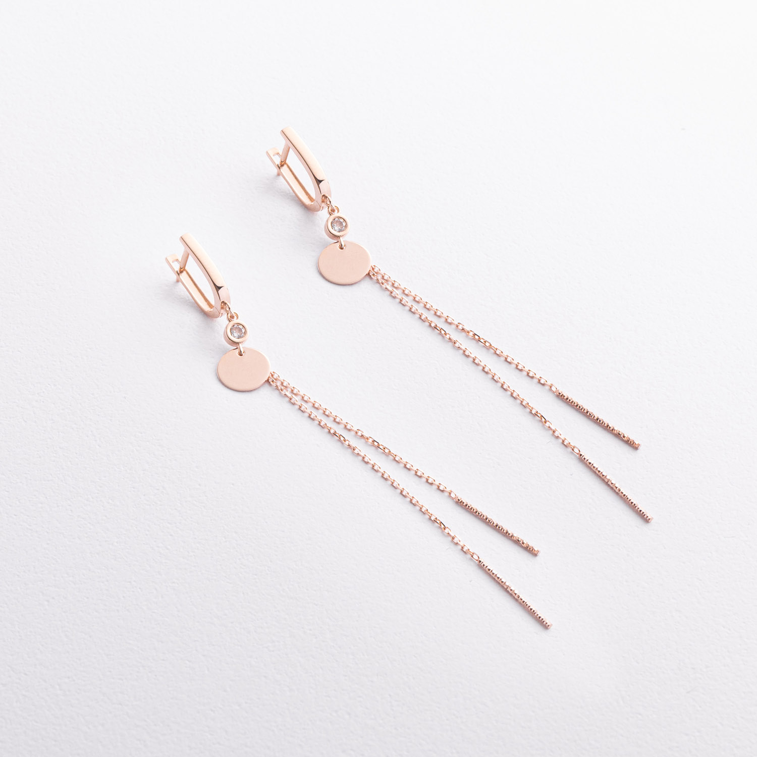 Серьги "Монетки" в красном золоте (фианиты) с09665 от ювелирного магазина Оникс - 1
