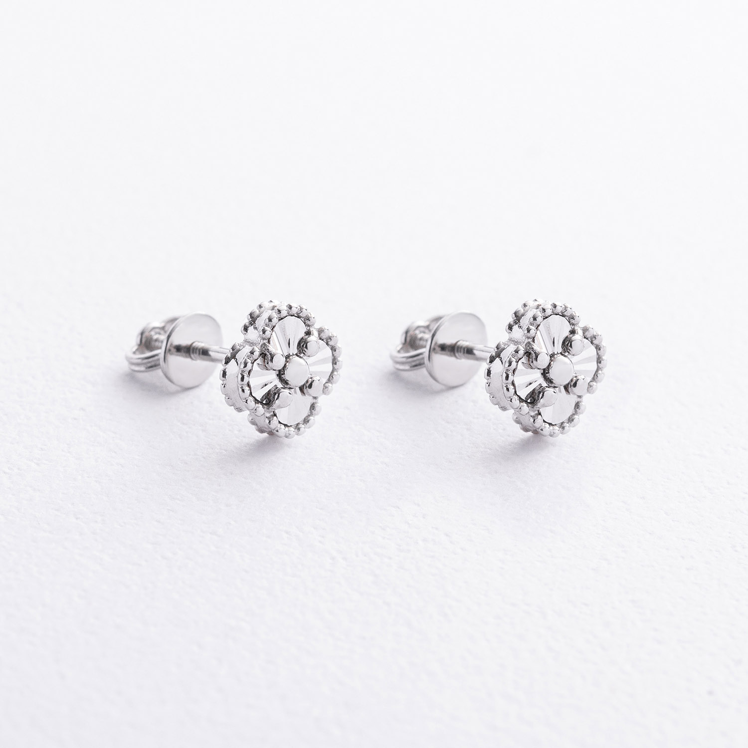 Cерьги - пусеты "Клевер" в белом золоте с09668 от ювелирного магазина Оникс - 1