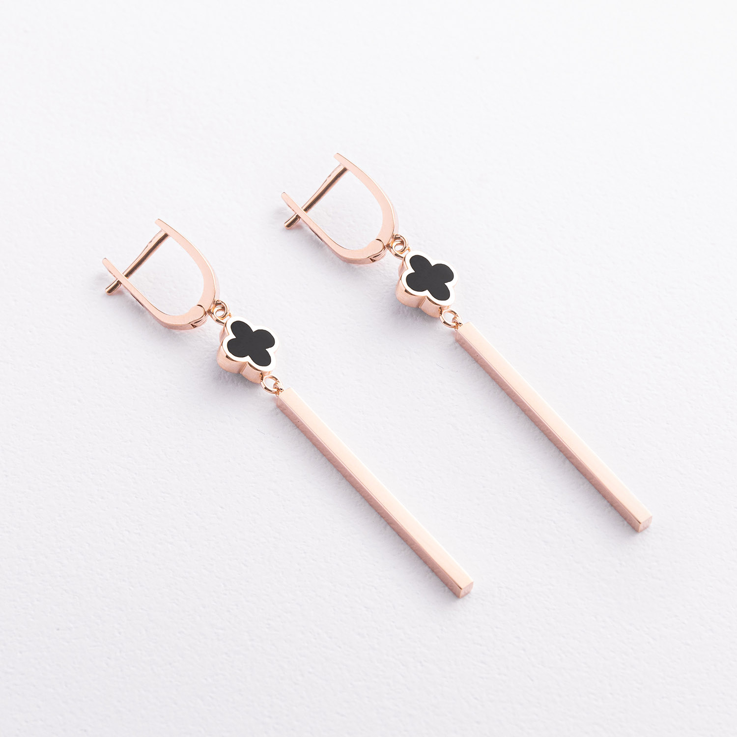 Золотые серьги "Клевер" (эмаль) с09710 от ювелирного магазина Оникс - 1
