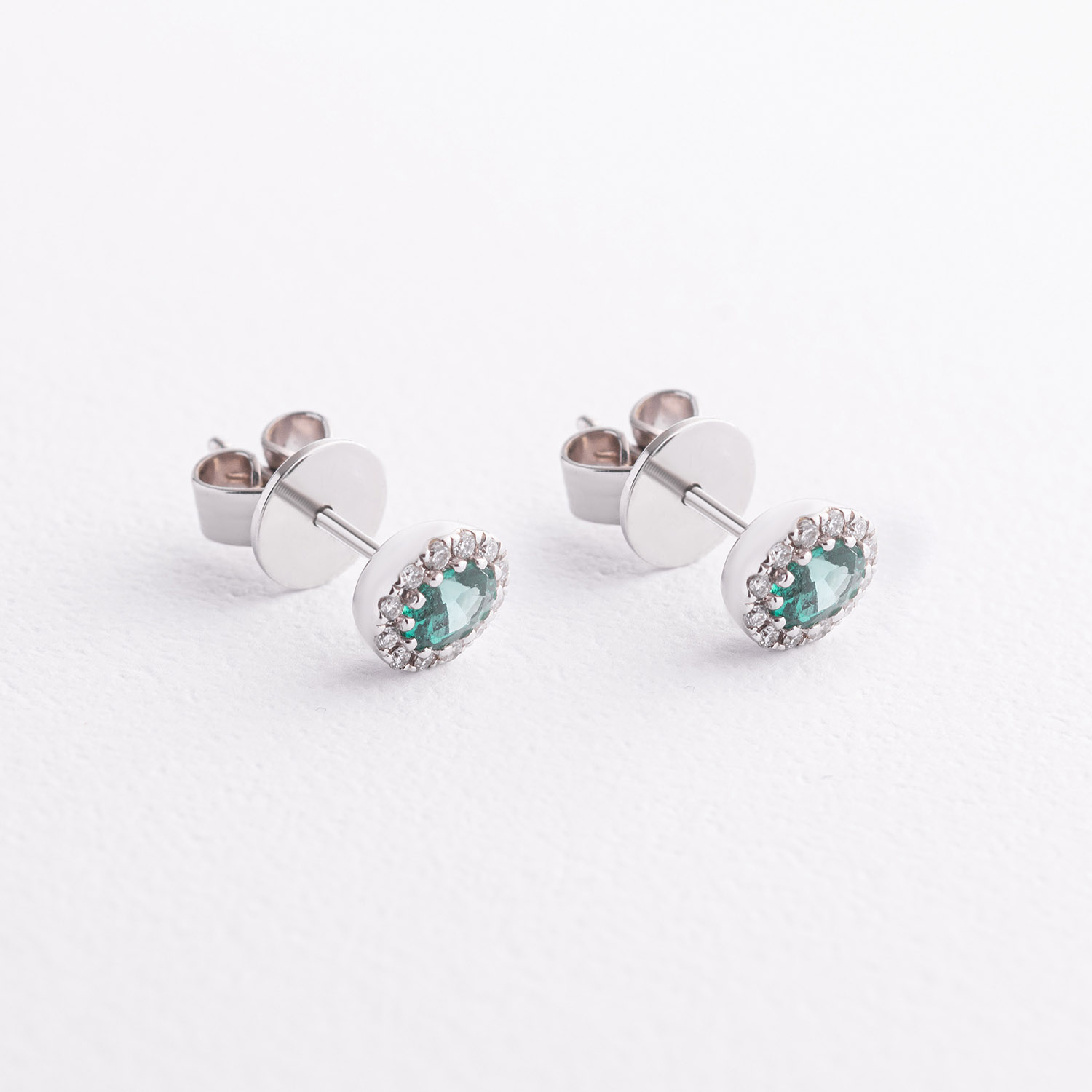 Золотые серьги - пусеты (бриллианты, изумруды) сб0509mi от ювелирного магазина Оникс - 1