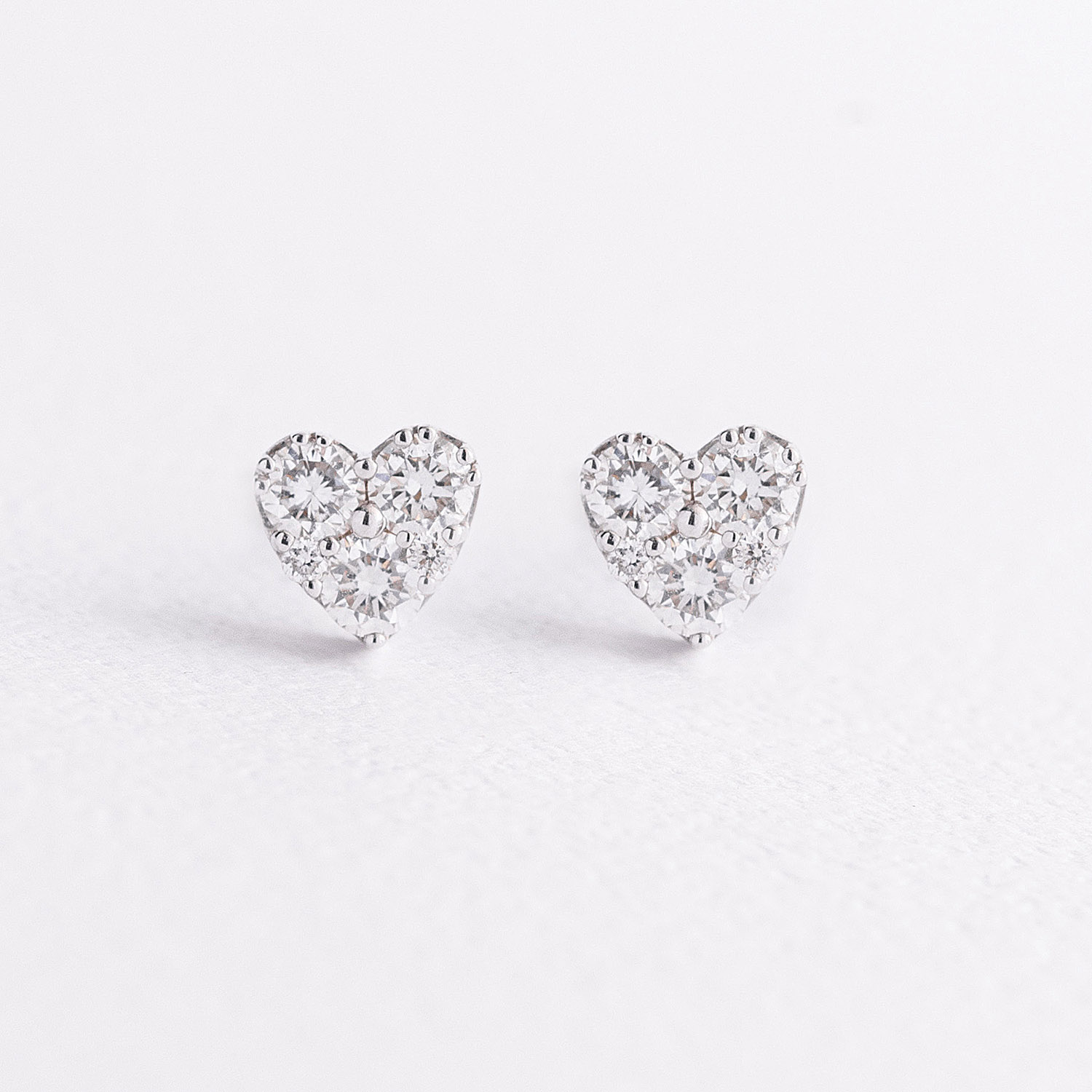 Золотые серьги - пусеты "Сердечки" с бриллиантами сб0550mi от ювелирного магазина Оникс