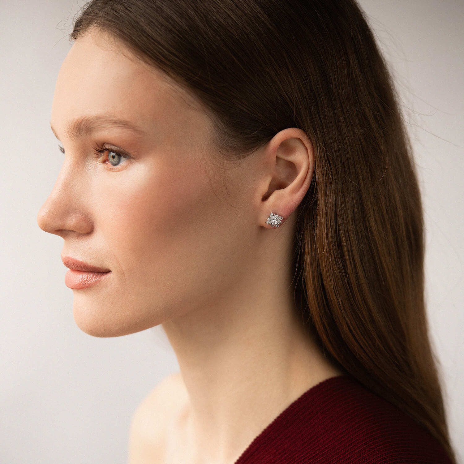 Золотые серьги - пусеты "Цветочки" с бриллиантами