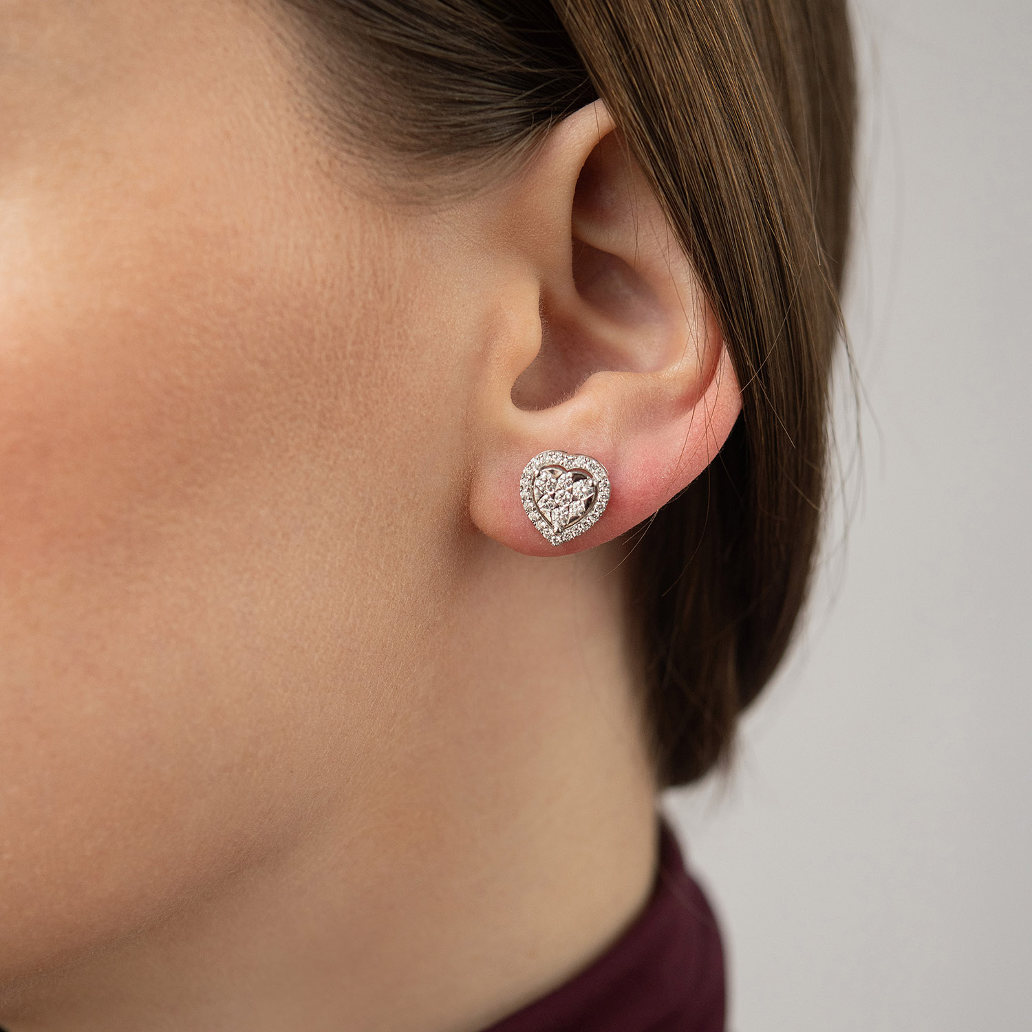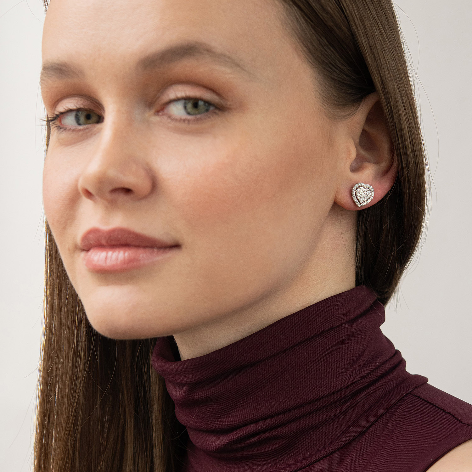 Золотые серьги - пусеты "Сердечки" с бриллиантами сб0613cha от ювелирного магазина Оникс - 6