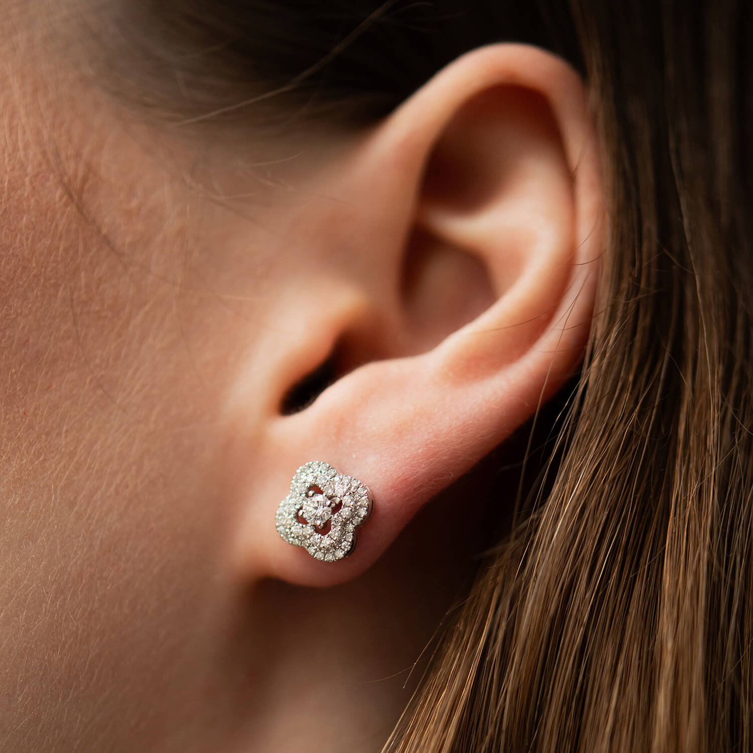 Золотые серьги - пусеты "Клевер" с бриллиантами