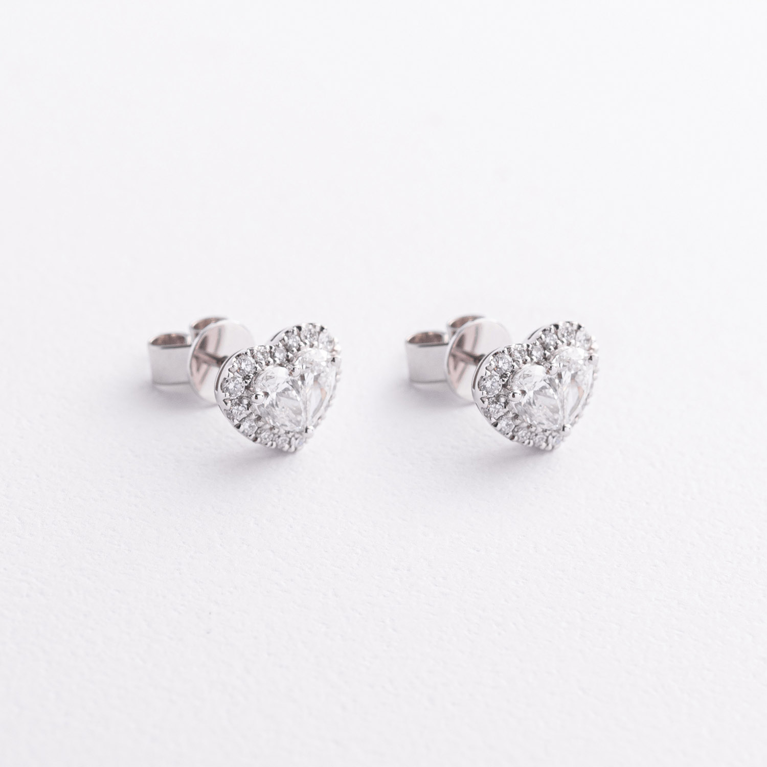 олотые серьги - пусеты "Сердечки" с бриллиантами сб0651nl от ювелирного магазина Оникс