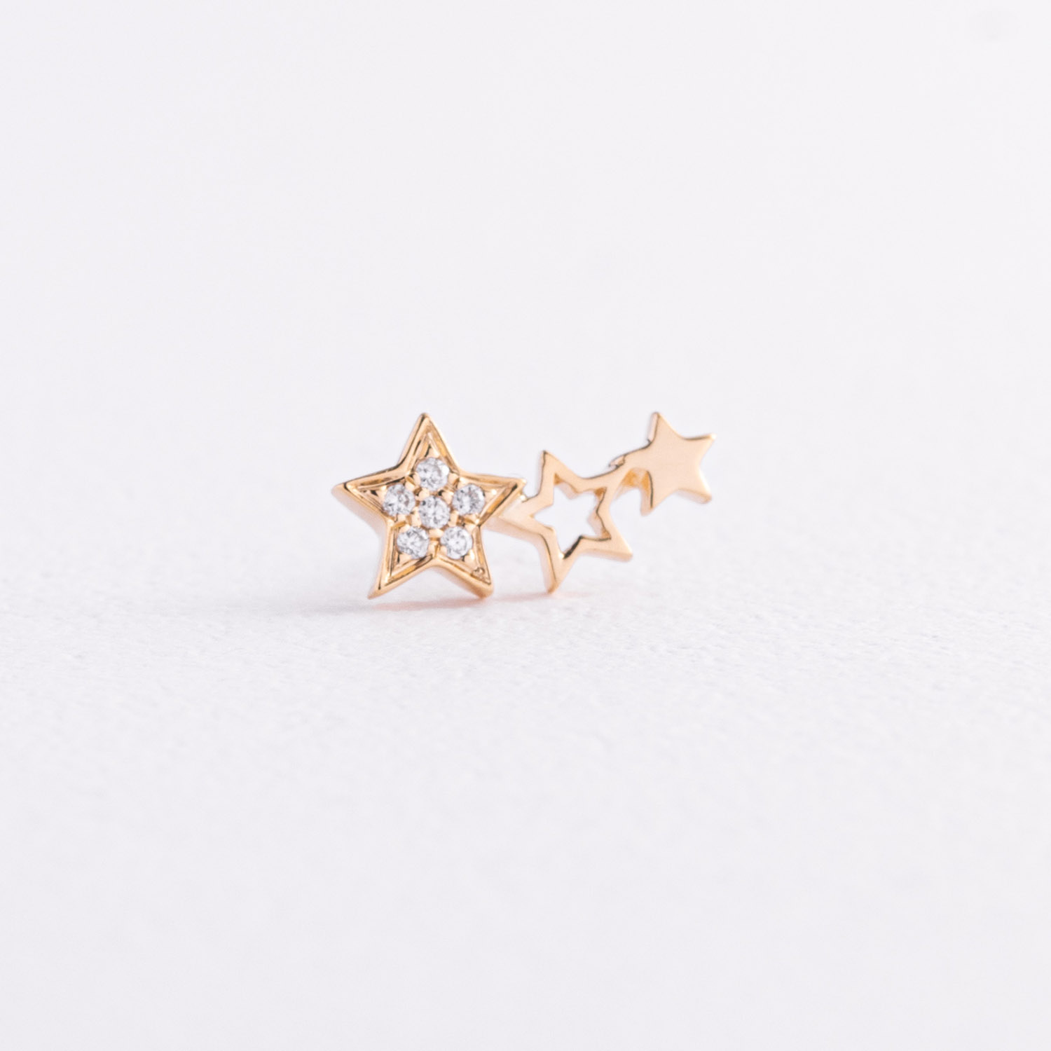 Одиночная золотая серьга для хеликса "Звездочки" (бриллианты)