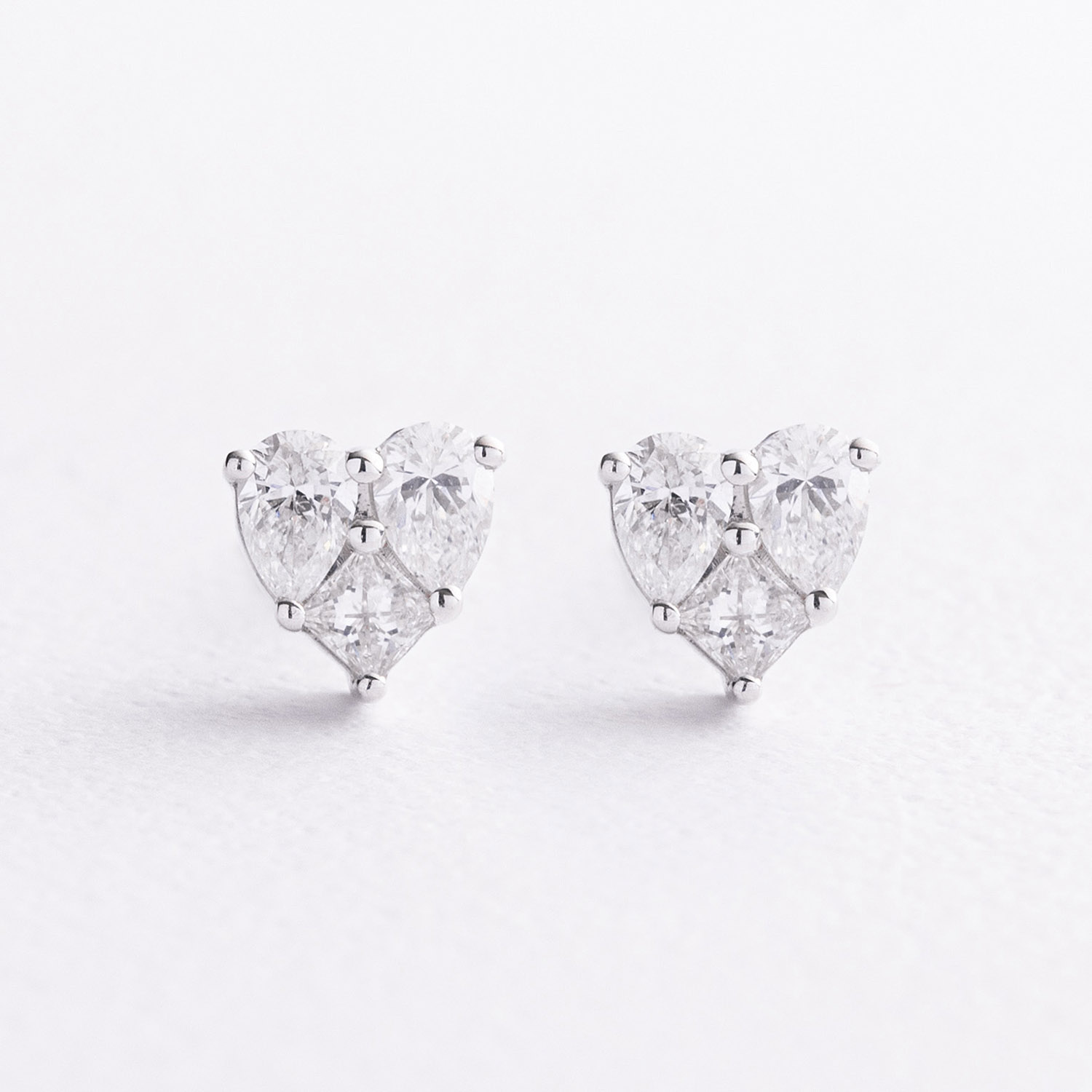Серьги - пусеты "Сердечки" в белом золоте (бриллианты)