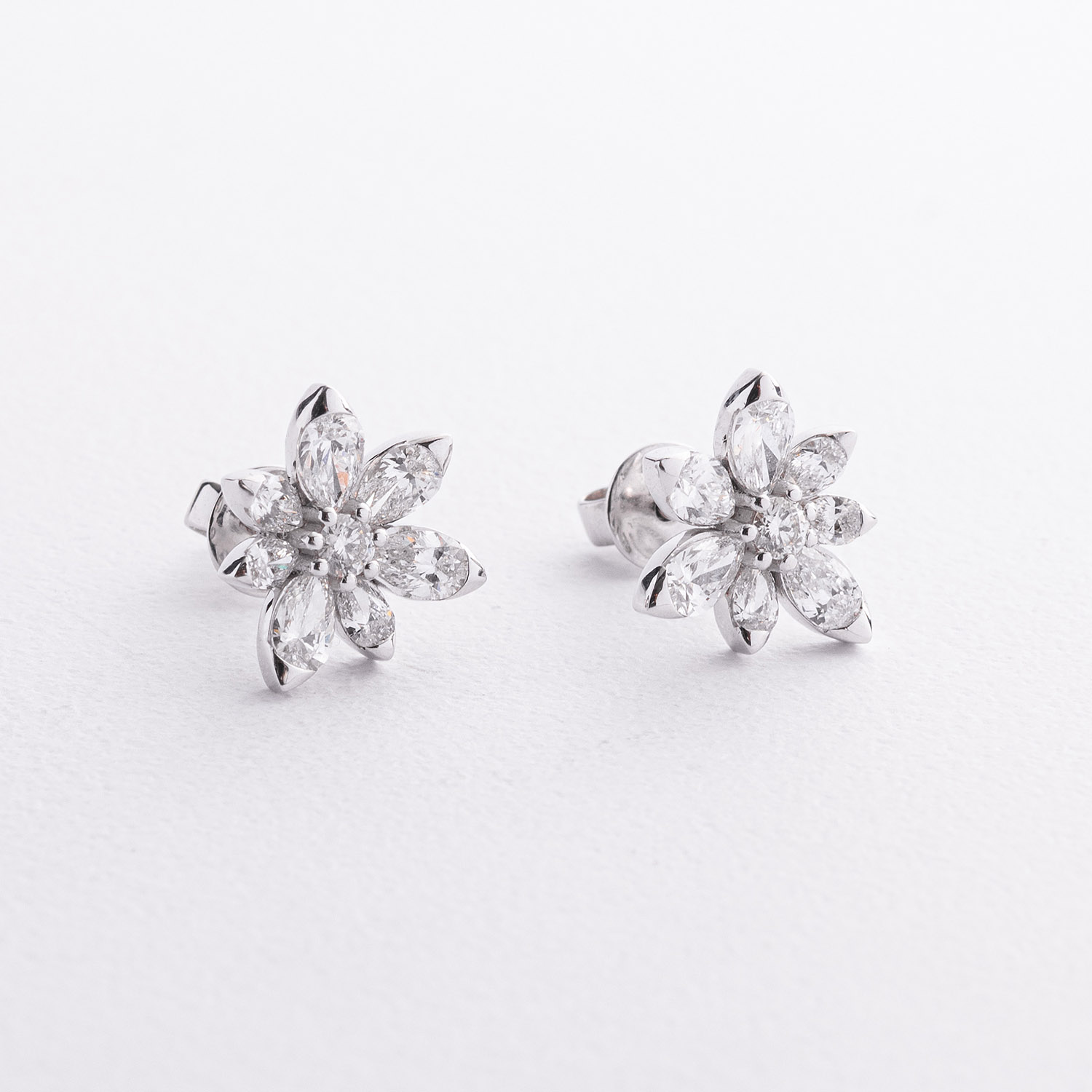 Серьги - пусеты "Цветочки" в белом золоте (бриллианты) сб0700rc от ювелирного магазина Оникс - 2