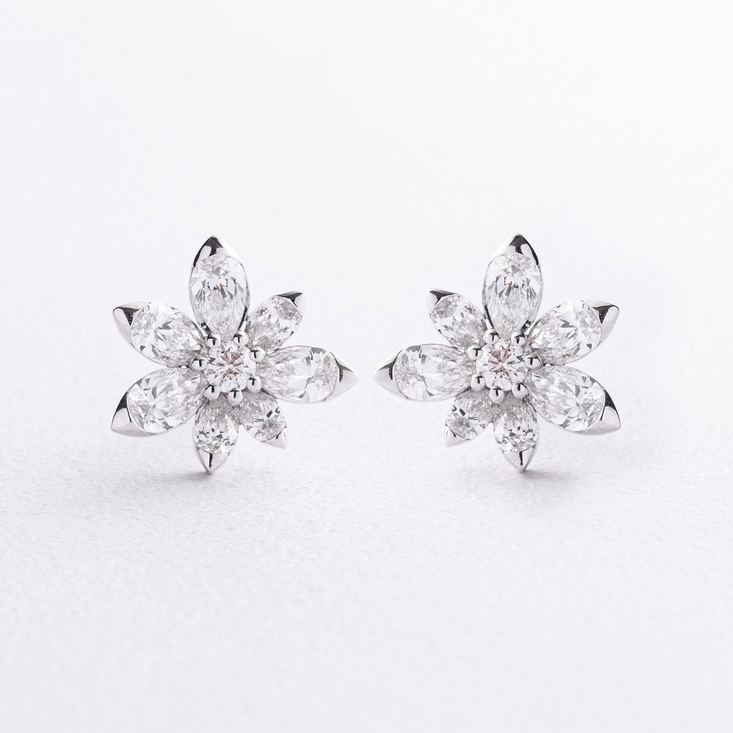 Серьги - пусеты "Цветочки" в белом золоте (бриллианты)