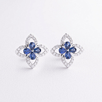 Серьги - пусеты "Цветочки" в белом золоте (бриллианты) сб0700rc