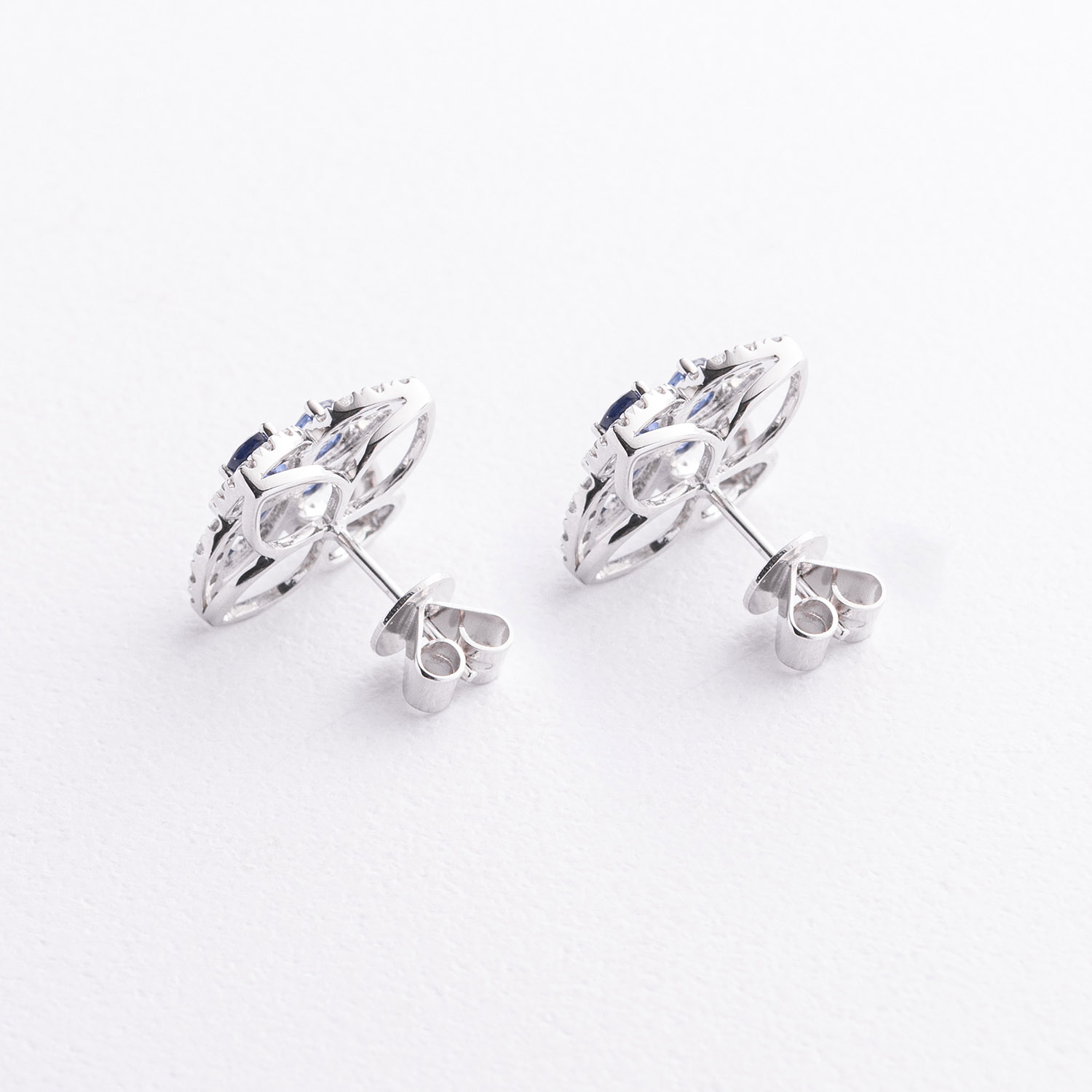 Серьги - пусеты "Клевер" в белом золоте (бриллианты, сапфиры) сб0701sm от ювелирного магазина Оникс - 2