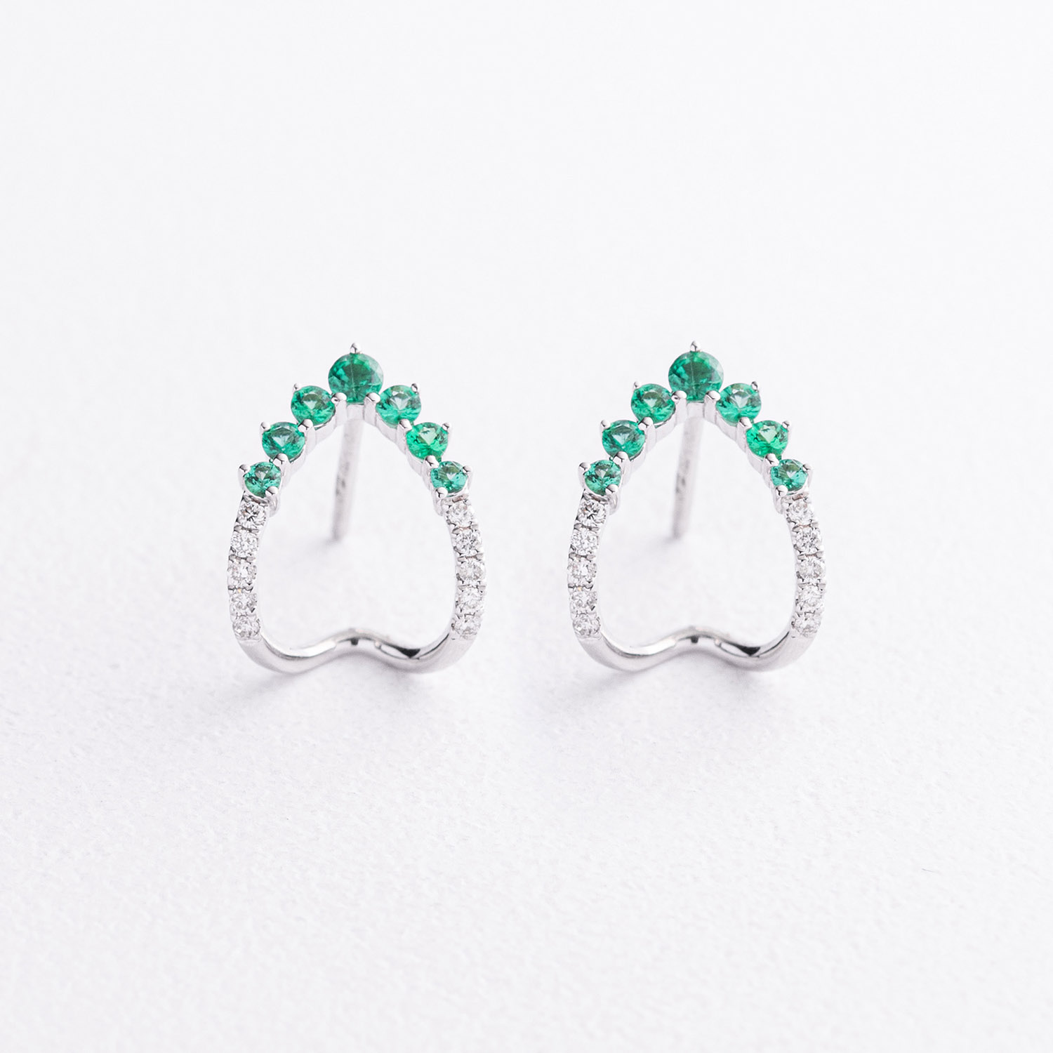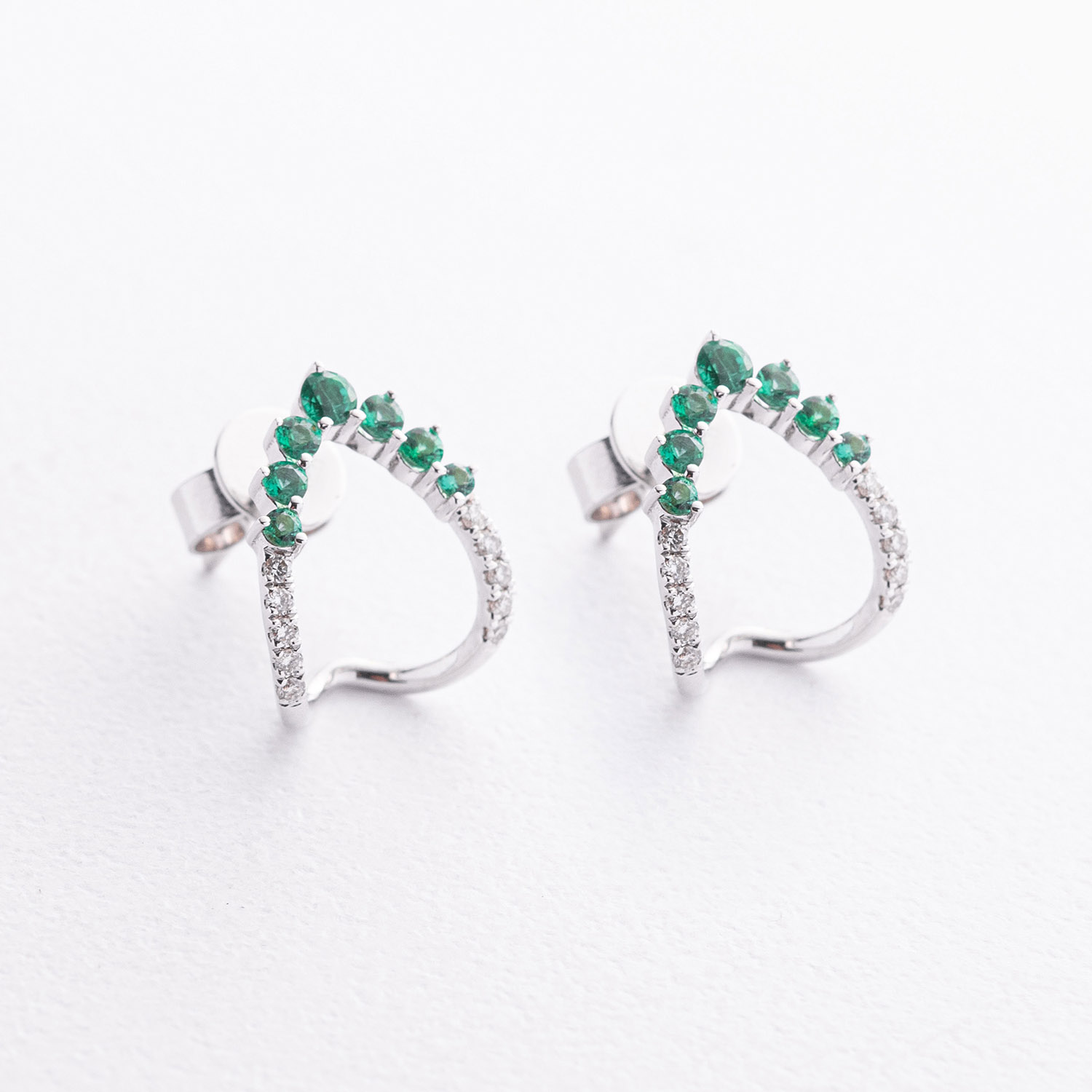 Серьги - пусеты в белом золоте (бриллианты, изумруды) сб0706ca от ювелирного магазина Оникс - 1