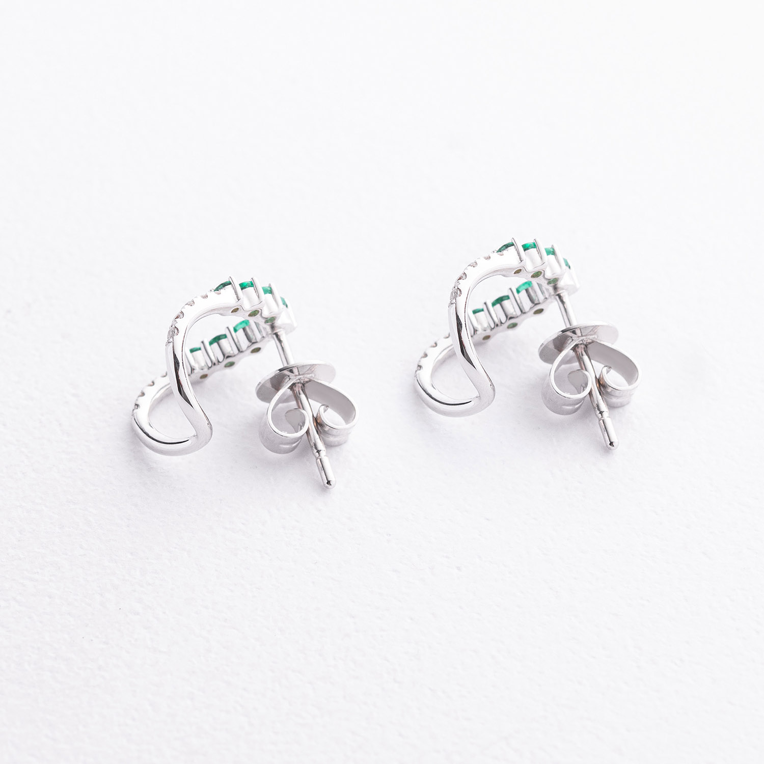 Серьги - пусеты в белом золоте (бриллианты, изумруды) сб0706ca от ювелирного магазина Оникс - 2