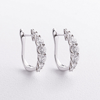Серьги - пусеты "Сердечки" в белом золоте (бриллианты) сб0709ca