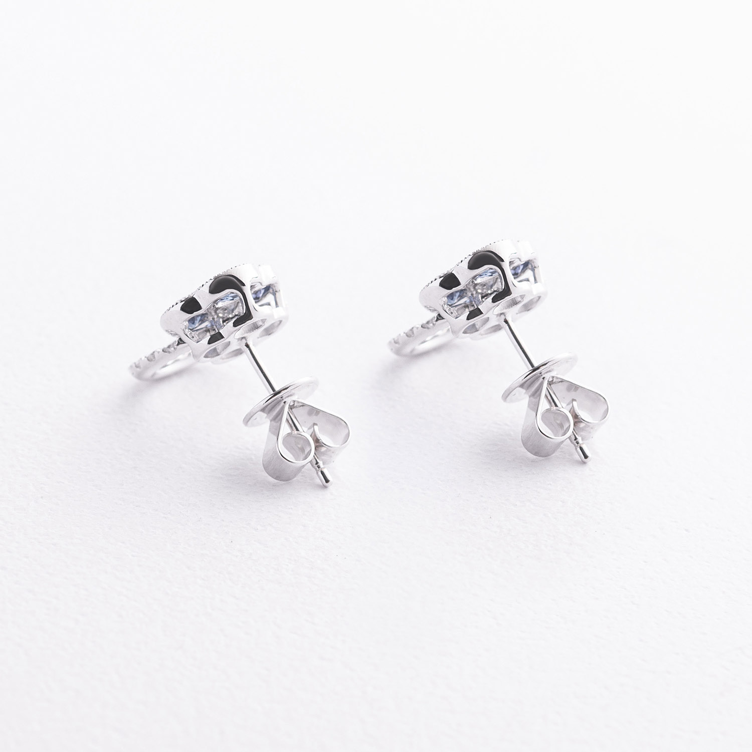 Серьги - пусеты "Клевер" в белом золоте (бриллианты, сапфиры) сб0720lg от ювелирного магазина Оникс - 2
