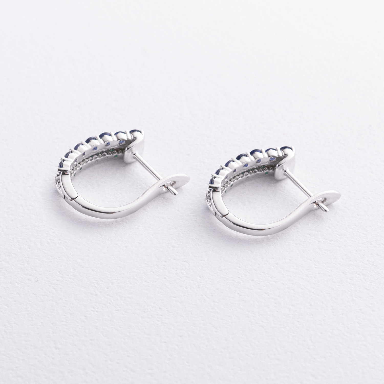 Серьги в белом золоте (бриллианты, изумруды, сапфиры) сб0721lg от ювелирного магазина Оникс - 1