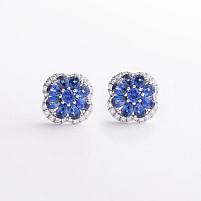 Серьги в белом золоте (бриллианты, изумруды, сапфиры)