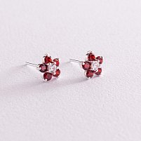Серебряные серьги-пусеты "Цветочки" (фианиты)