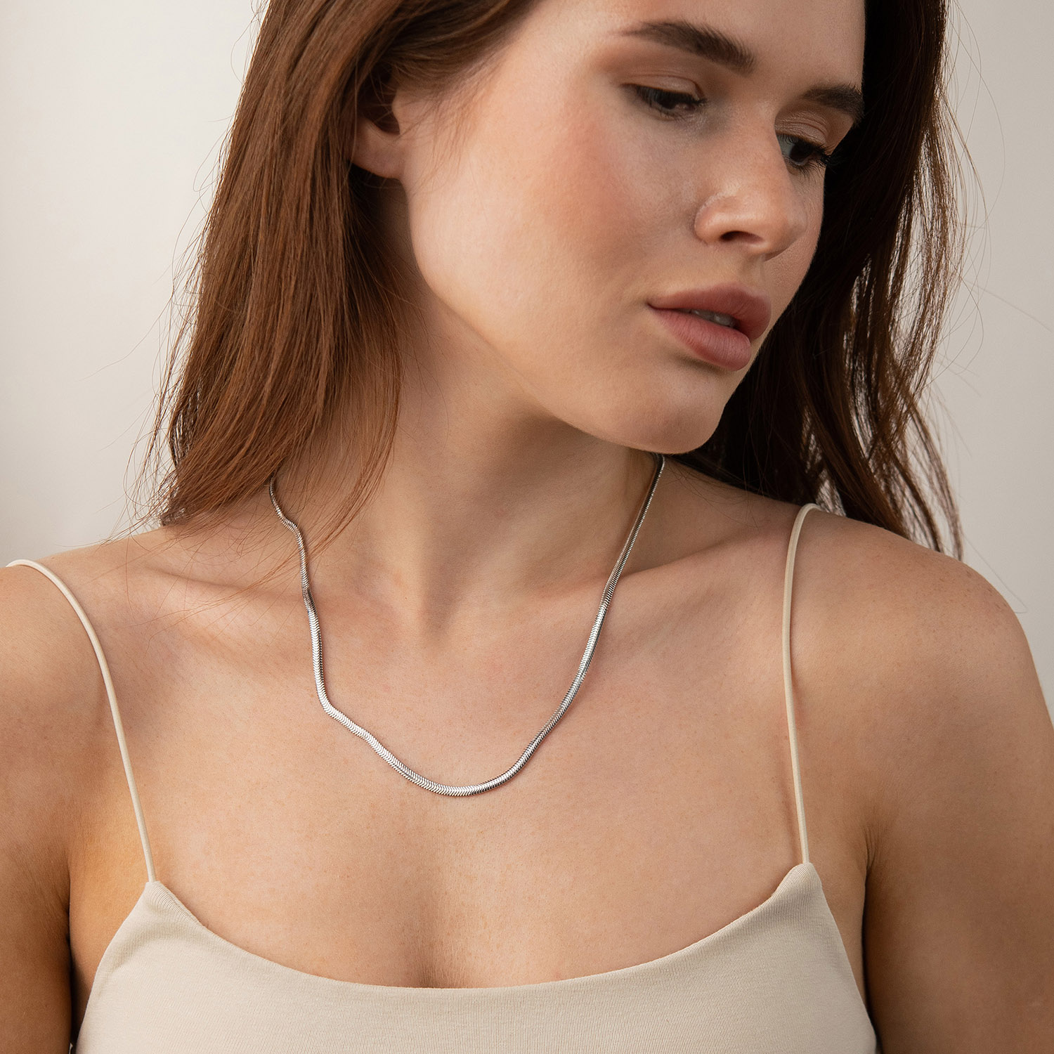 Колье "Gisele" в белом золоте (снейк - 3.5 мм)