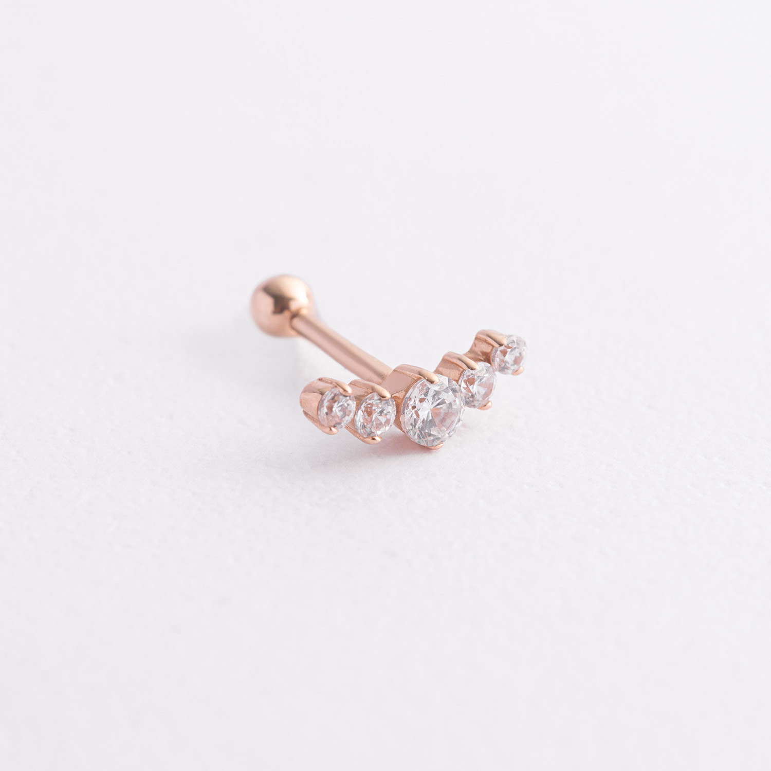 Одиночная золотая серьга в хрящ ушка (фианиты)