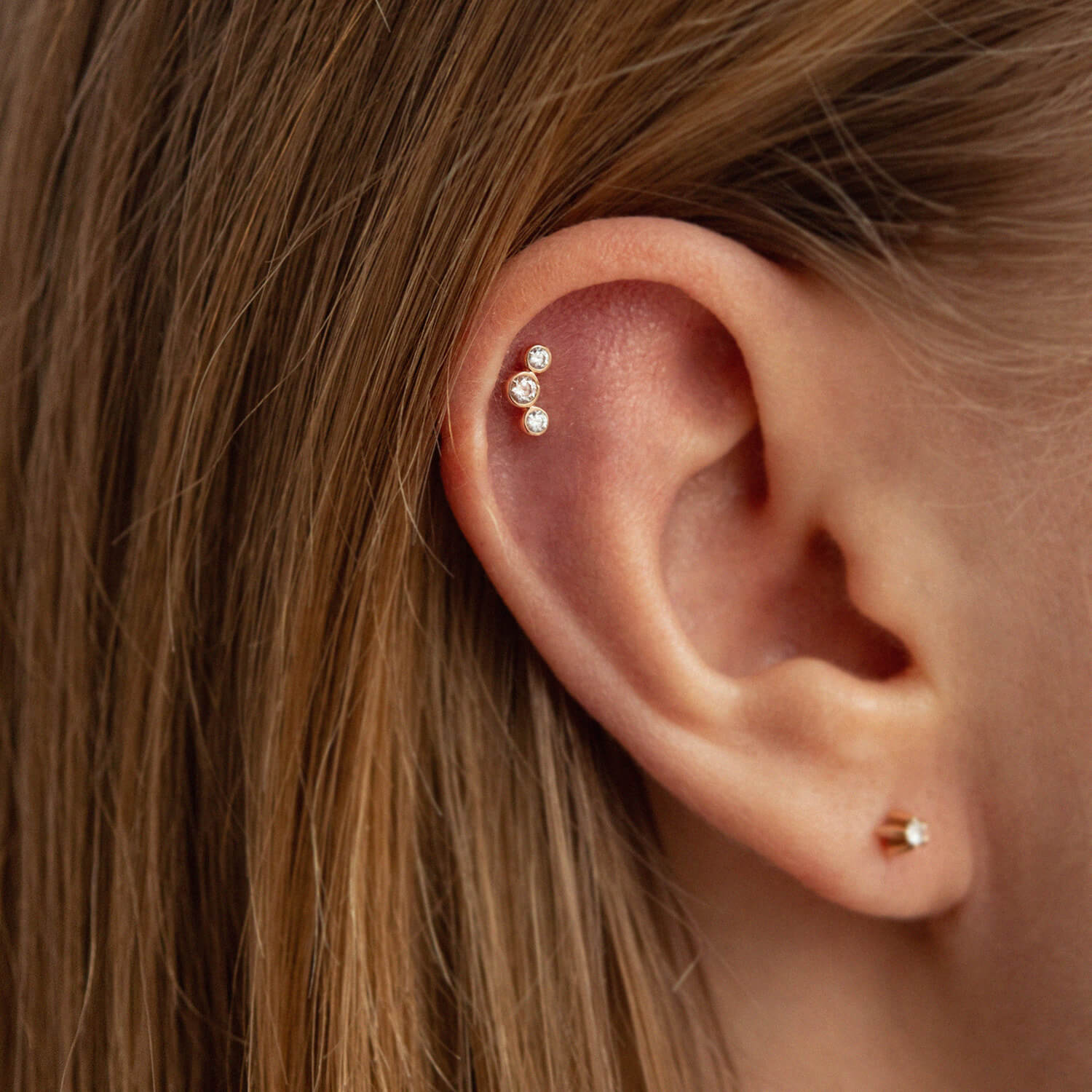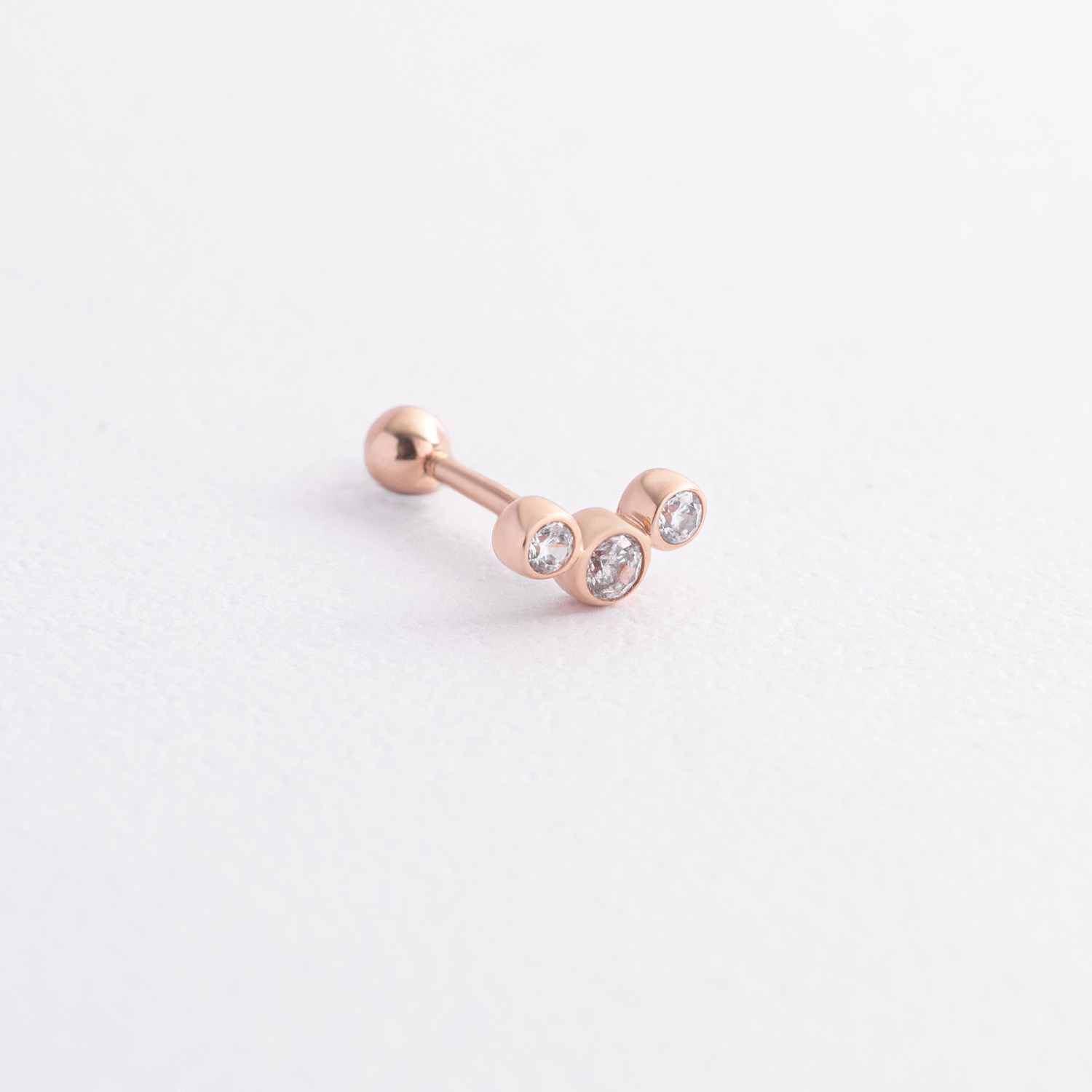 Одиночная золотая серьга в хрящ ушка (фианиты)