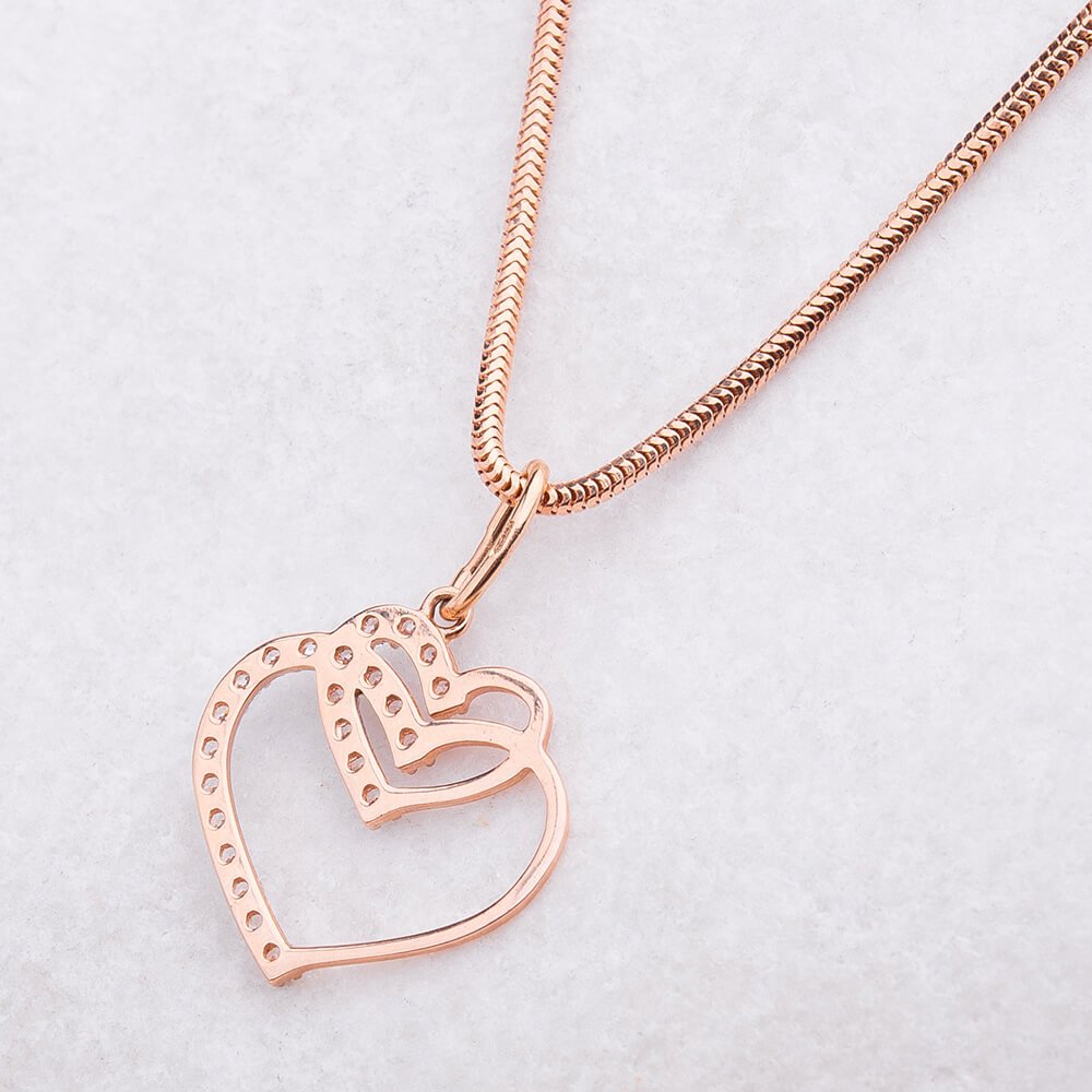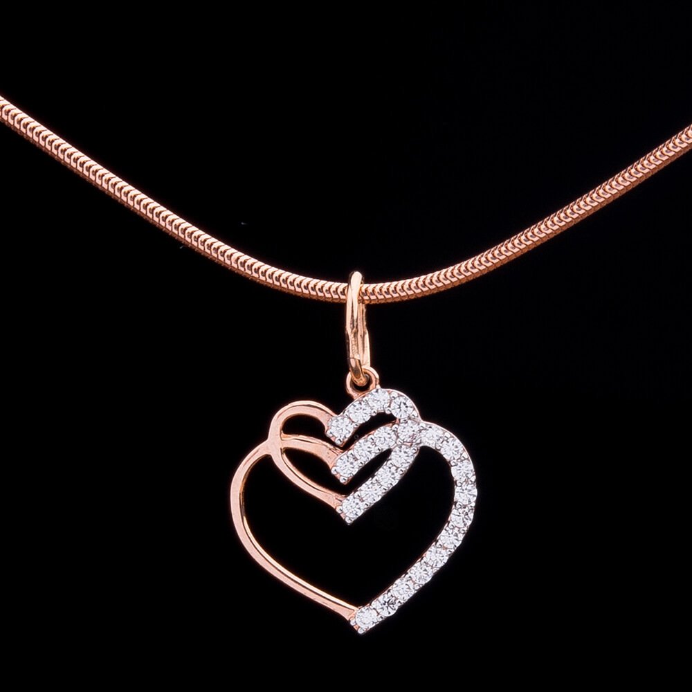Золотая подвеска в форме двух сердец с фианитами п01453